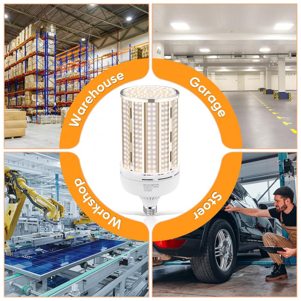 A Lâmpada de LED Corn XYCN de 200W proporciona uma iluminação poderosa e eficiente, com mais de 55.000 horas de vida útil. Com um índice de reprodução de cores de 85, as cores são vistas com precisão. Seu design sem ventoinha e dissipação de calor eficaz garantem estabilidade e longa durabilidade. Com 420 chips de LED, oferece um brilho impressionante de 29.500 lumens, equivalente a uma pequena estrela. Ideal para ambientes como galpões, garagens, jardins, supermercados, fábricas, estacionamentos, escolas e muito mais. Instalação fácil e ampla aplicação, sendo ideal para projetos de iluminação comercial e industrial.