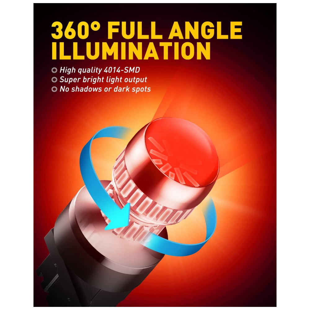 Assemelhando se ao design de forma de lâmpada de halogênio e sequenciamento de 54 chips de LED 4014 SMD precisamente ao redor da lâmpada. Oferecendo alta eficiência luminosa de 360 com luz vermelha brilhante total. Muito mais fácil de notar e uma direção muito mais segura