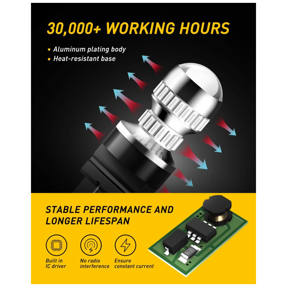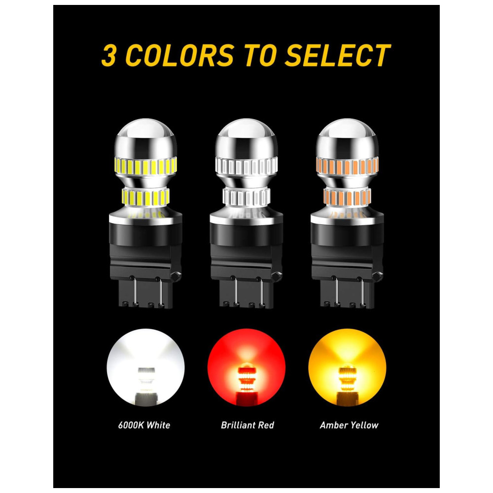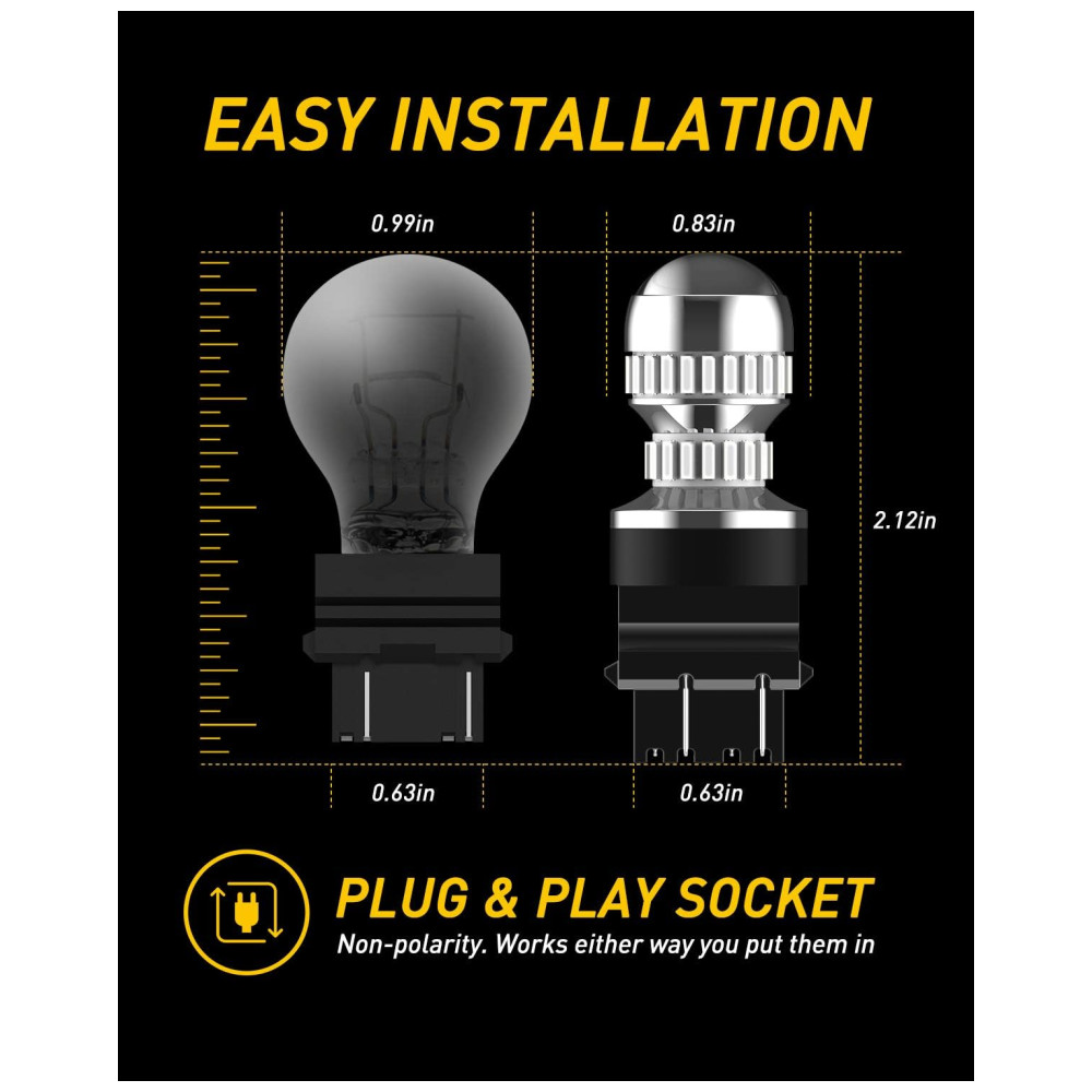 Tamanho pequeno comparável às lâmpadas OEM Sem polaridade, aplicado ao padrão dos EUA e tomadas CK. Se encaixa 3056 3156 3157 3157K 3057 4057 4157 etc