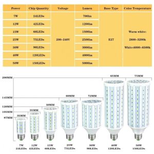 Lâmpada LED Milho YSJX 12W E27 5730SMD Luz Branco Quente Econômica para Casa Escritório e Corredor – Iluminação Durável e EficienteGeneric