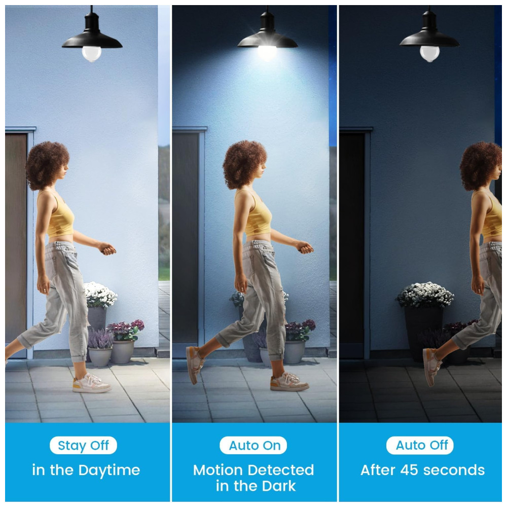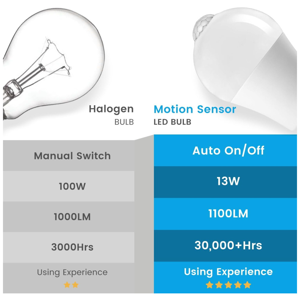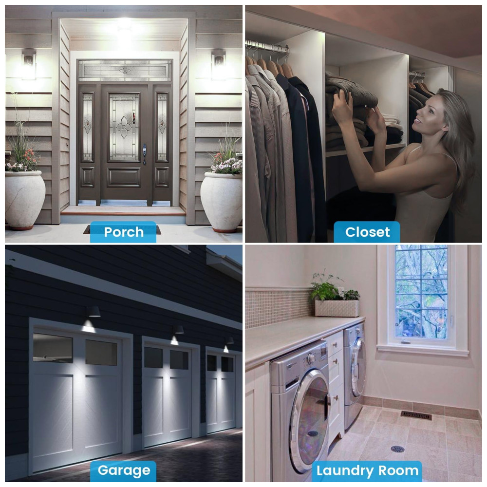 Super brilhante, economia de energia e amplo uso Esta lâmpada de sensor de movimento E26 de 13W, equivalente a lâmpadas tradicionais de 120W, é super brilhante economizando até 85 de energia e pode ser usada amplamente à noite ou em ambientes escuros, como escadas, corredor, casa de banho, porta da frente, arrecadação, garagem, armário.