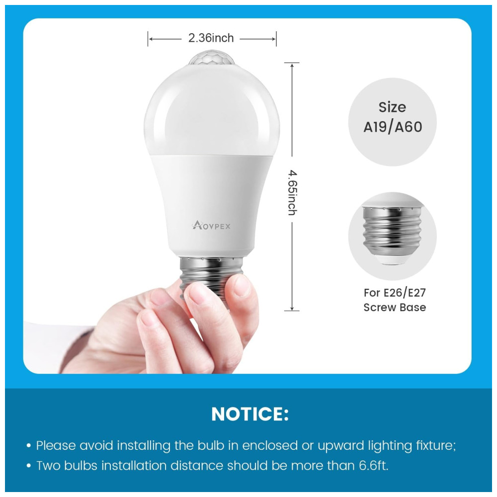 Sensor de movimento infravermelho PIR Com chip infravermelho PIR sensível na parte superior da lâmpada, esta lâmpada do sensor inteligente acenderá automaticamente enquanto detecta movimento dentro de 8 16 pés no escuro e desliga após o movimento cessar cerca de 30 segundos. NOTA Certifique se de que o sensor esteja apontando para baixo dentro da distância e ângulo adequados para aumentar a sensibilidade.