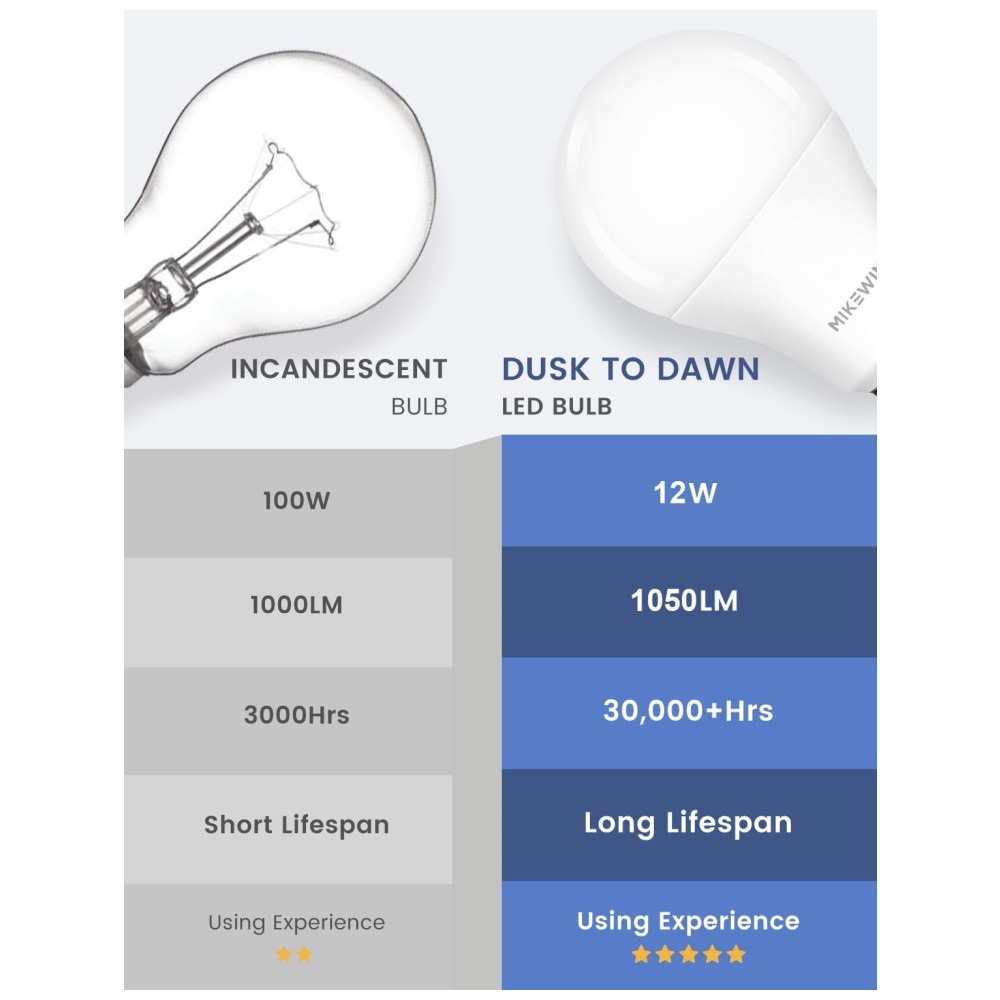 Vida útil mais longa e garantia de qualidade A lâmpada do sensor de luz MikeWin fornece 30.000 horas de vida útil, feita de material para PC, atende aos requisitos legais exclusivos do chip LED. Ele pode resolver o incômodo da substituição frequente da lâmpada
