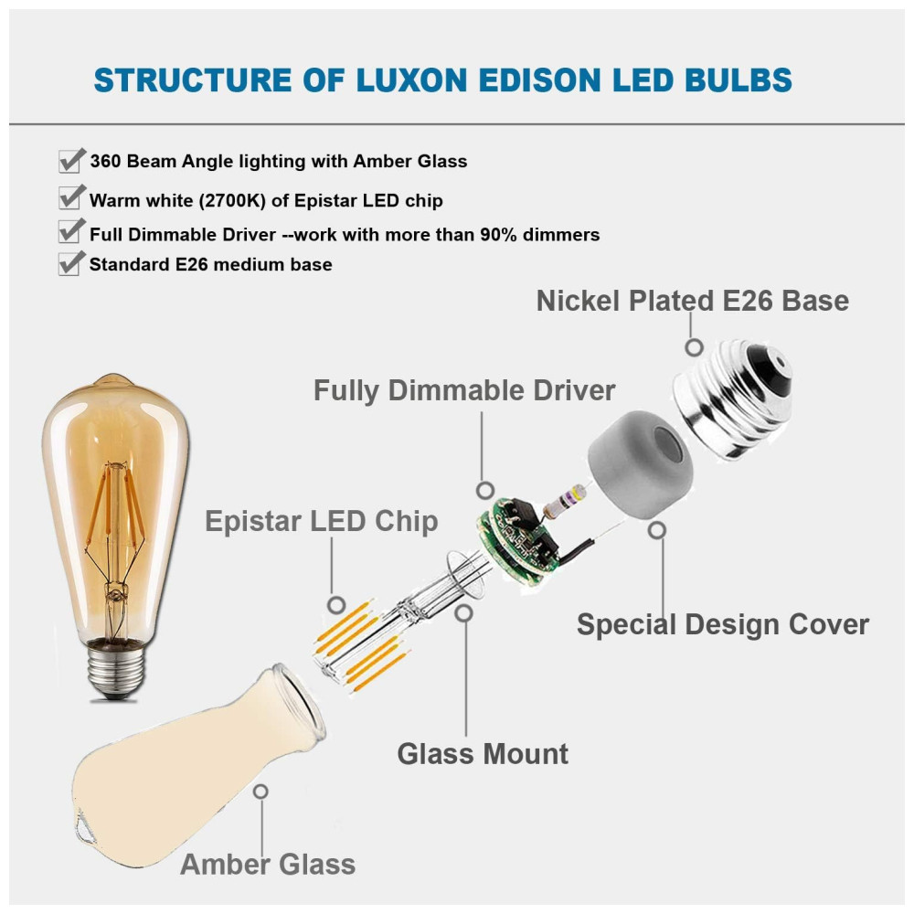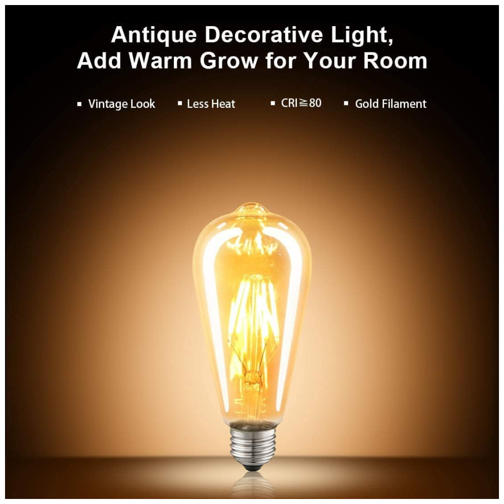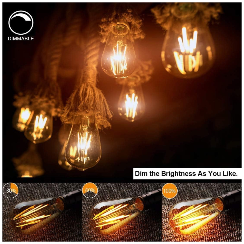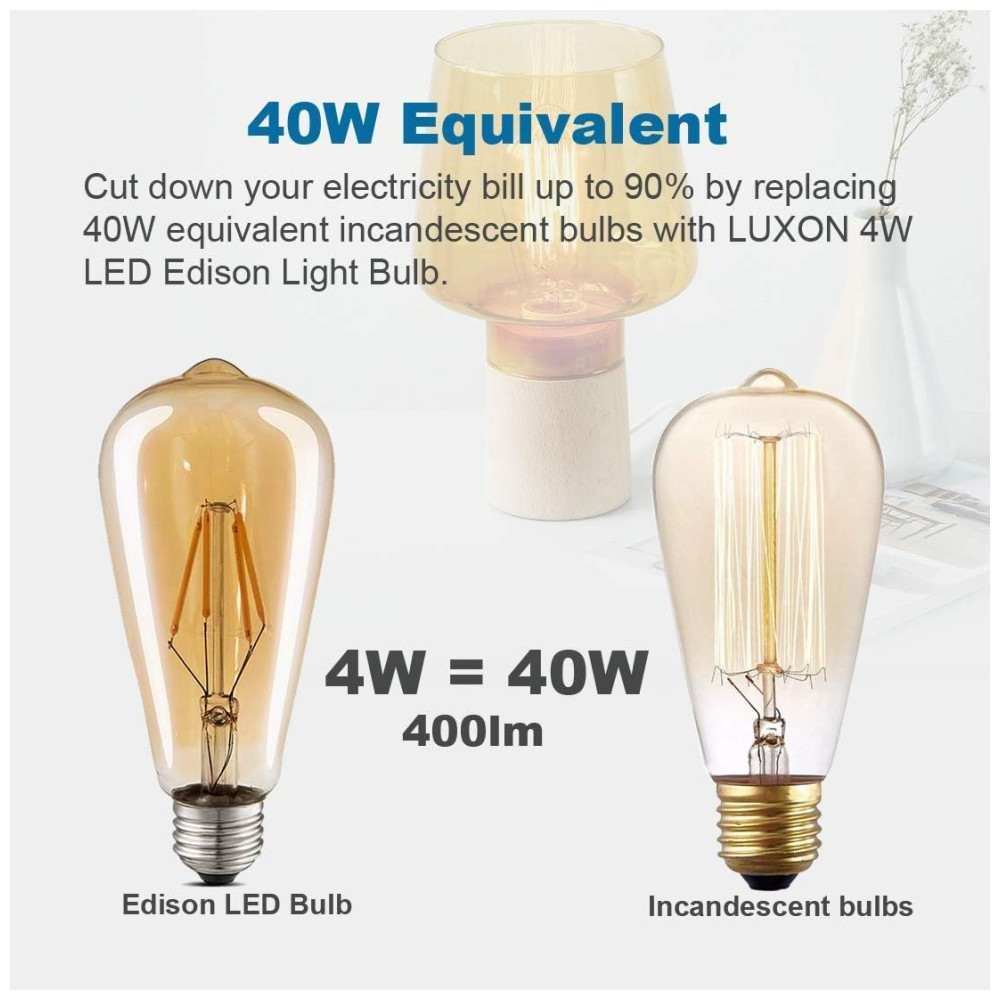 ECONOMIZE SEU DINHEIRO As lâmpadas de filamento de LED substituem a lâmpada incandescente de 40W por LED de 4W, economizando mais de 90 na conta de luz de eletricidade. Feito pelo exclusivo FILAMENTO DE OURO resistente oferece 20.000 horas de vida útil, você pode usar por 18 anos com base no uso 3 horas por dia