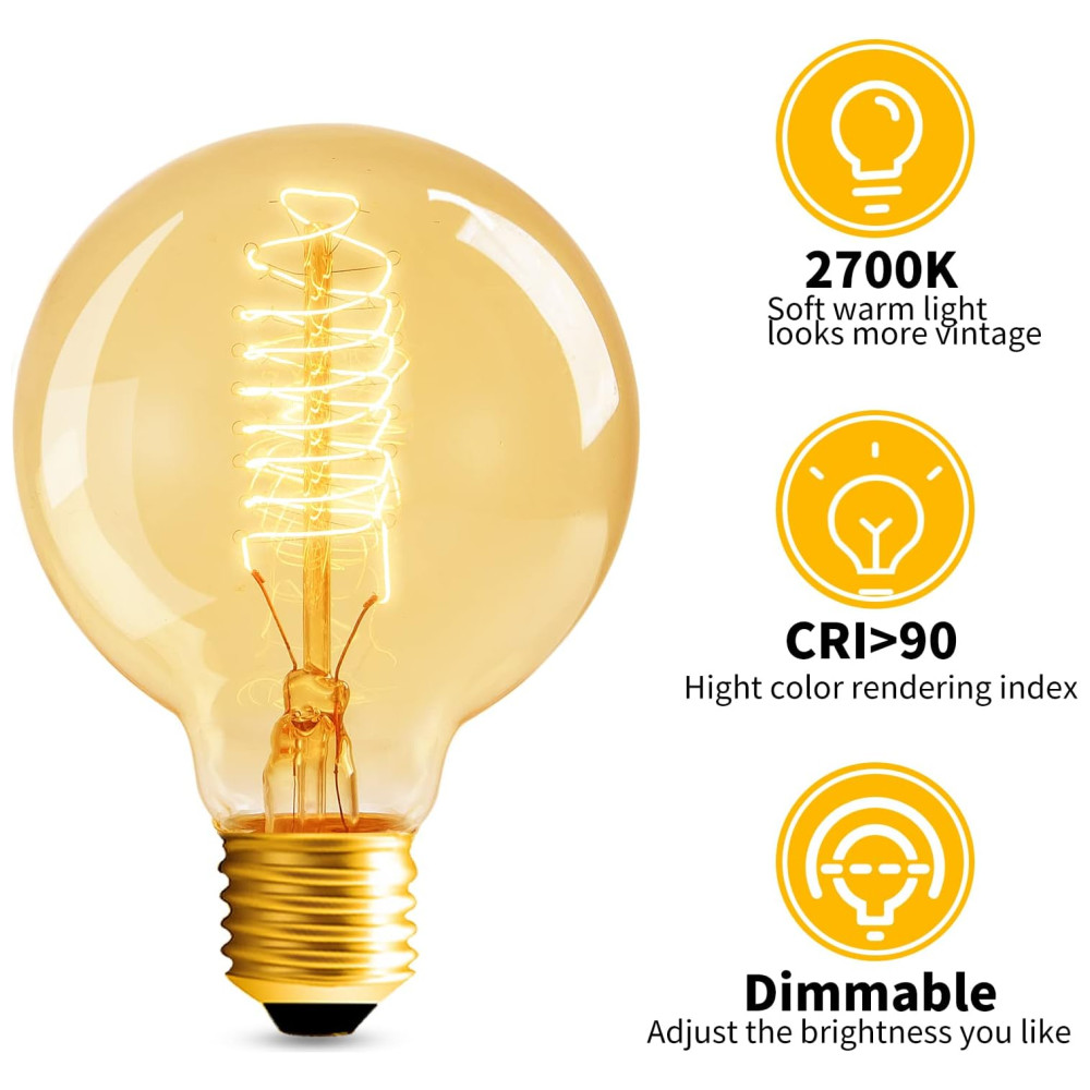 Característica do produto Lâmpadas Edison retro estilo vintage HESSION resistente para o modo regulável não regulável. 6 pcs de 110V 2700K G80 lâmpadas com base e26, e27.