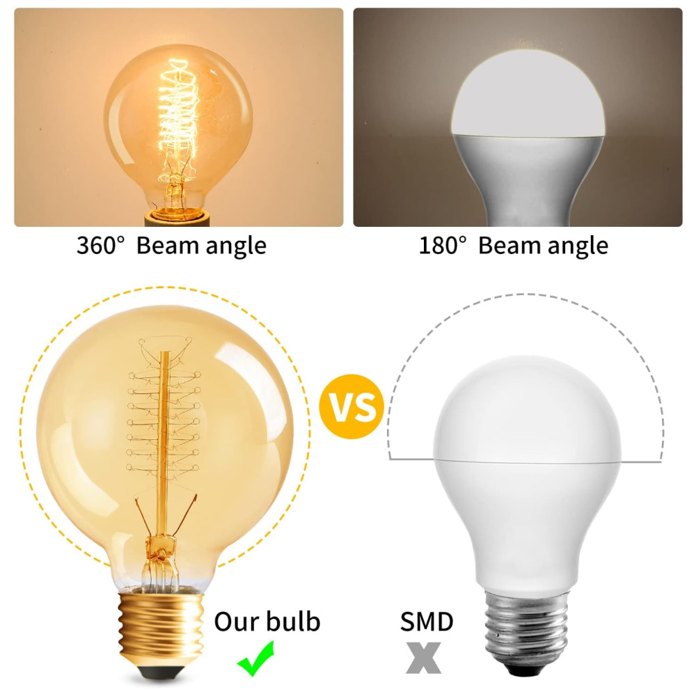 Proteção para os olhos As lâmpadas vintage E26 Edison sem radiação ultravioleta e infravermelha sempre protegida. Nossas lâmpadas ecológicas são inofensivas para as pessoas e o meio ambiente.