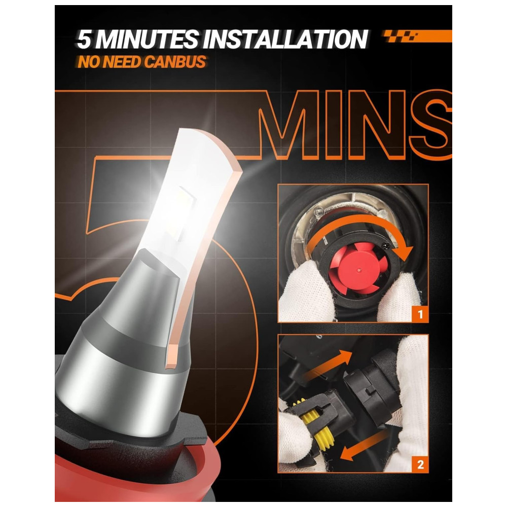Alta eficácia luminosa de até 8000lm por par, 4000lm por lâmpada. Total de chips CSP 12x 6000K xenônio branco. 300 mais brilhante que o halogênio, aprimore sua visibilidade à noite. Plug and Play instalação de halogênio, sem polaridade e fácil instalação. Serve como farol alto do farol 9005 , HB3. Se o farol alto e o DRL do seu veículo forem controlados pela mesma lâmpada, este 9005 pode estar piscando no modo DRL devido à baixa tensão de entrada, como Toyota Corolla , Camry , Avalon , Sienna etc. Verifique o manual do proprietário. Padrão de feixe perfeito não esconda o tráfego, nem ofereça atenção a outros motoristas. Os LEDs CSP de alta qualidade ajudam você a ver mais longe. Versão atualizada da série L2 design ultrafino de placa de liga de 1,, iluminação de 360 graus. O turbofan potente com 12.000 RPM fornece capacidade de super refrigeração. Antes de adquirir consulte um eletricista de sua confiança