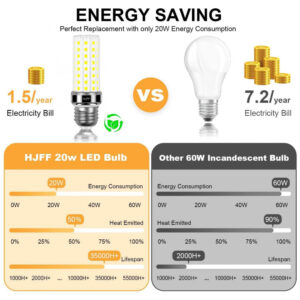 Lâmpadas LED 20W (4 unidades), equivalentes a 200W, com 2500 lúmens cada, proporcionam luz branca fria 6000K ideal para ambientes internos e externos. Possuem base E26/E27 compatível com ventiladores de teto e luminárias convencionais. Não dimmáveis, garantem alta eficiência energética e longa durabilidade, produzindo iluminação uniforme e brilhante. Indicadas para residências, garagens, galpões e depósitos. Design em formato de milho (corn bulb) para melhor distribuição da luz, resistentes a impactos e variações de temperatura. Perfeitas para quem busca economia, conforto visual e praticidade na instalação.