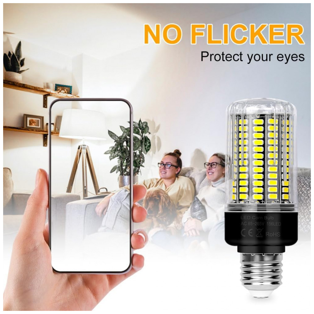 Lâmpada LED tipo milho 30W (equivalente a 300W), com brilho intenso de 3520 lúmens e luz branca fria 6000K, ideal para iluminação residencial e comercial. Possui base E26/E27 padrão, compatível com ventiladores de teto e lâmpadas comuns, e funciona em voltagem ampla AC85-265V para diversas regiões. Proporciona iluminação eficiente e econômica para ambientes internos e externos como cozinha, sala, garagem, casa, armazém e áreas ao redor. Seu design 4U oferece distribuição de luz em 360°, garantindo iluminação uniforme. Produto durável e de fácil instalação, perfeito para quem busca luminosidade super brilhante e economia de energia em um pacote com 6 unidades. Garantia de qualidade e longa vida útil para uso contínuo.