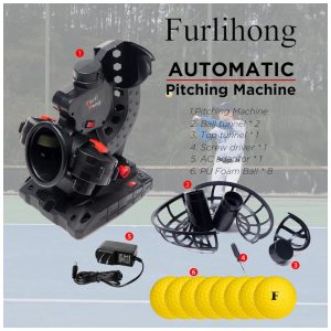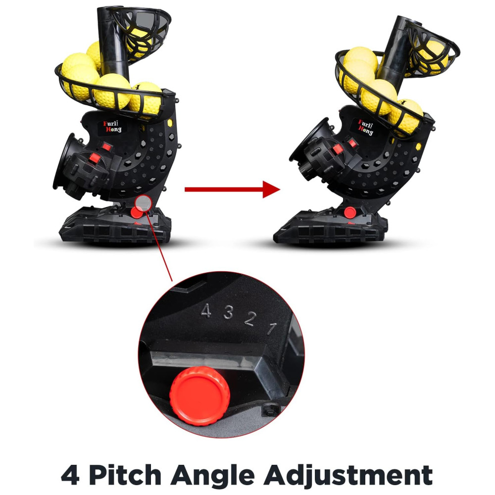 Lançador de Bolas Automático Infantil com Adaptador 8 Bolas Velocidade e Ângulo Ajustáveis AC Furlihong Preto