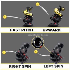 Este produto oferece um ajuste completo da velocidade ao ângulo das duas rodas laterais para todos os tipos de arremessos, incluindo bolas rápidas, curvas e sliders. É portátil e versátil, funcionando com baterias 4 D não incluídas ou com o adaptador CA de 6V fornecido. É importante remover as baterias ao usar a alimentação CA. A máquina está equipada com proteção contra atraso, portanto, é necessário aguardar alguns segundos depois que a máquina for ligada.