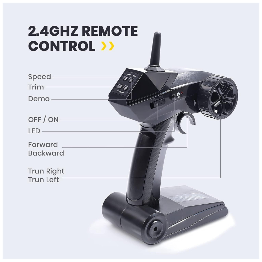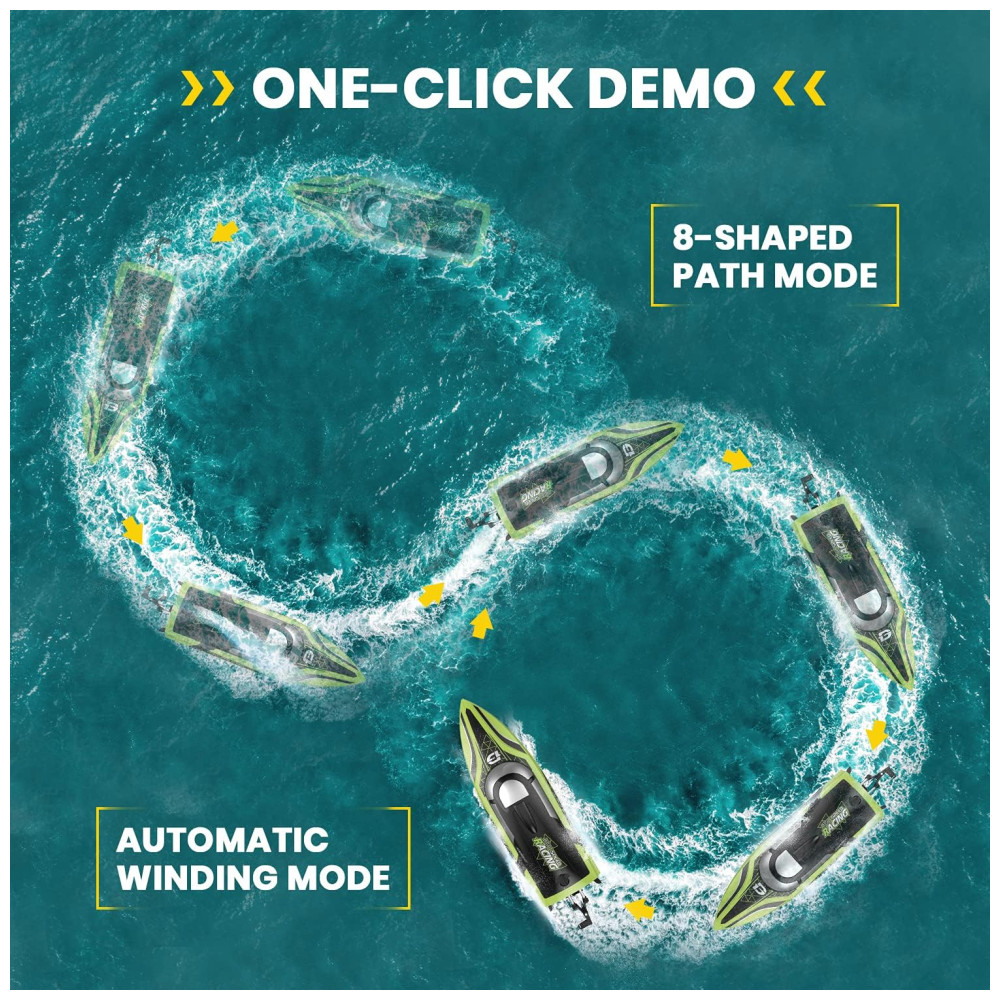 Velocidade mutável Este barco RC tem dois modos de aceleração Modo 1 e 2, que você pode alternar o modo de aceleração livremente com este controlador remoto de hélice grande. Assim, você pode controlar a velocidade do barco, a velocidade máxima de até 25km , h. Com o modo de piloto automático fáceis de pregar peças para crianças e adultos, ideal para piscina e ao ar livre.