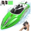 2.4 GHz de alta velocidade 2.4 GHz sistema de controle de rádio marinho suporta vários barcos rc para correr em sincronia A velocidade máxima de até 30 MPH 50km , h permite que você tire outros barcos de controle remoto da água Brinquedos de navio de corrida rc ideais para piscina e ao ar livre