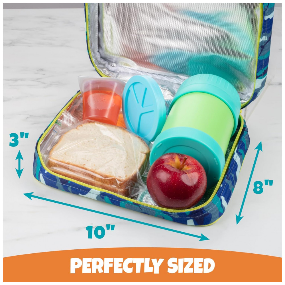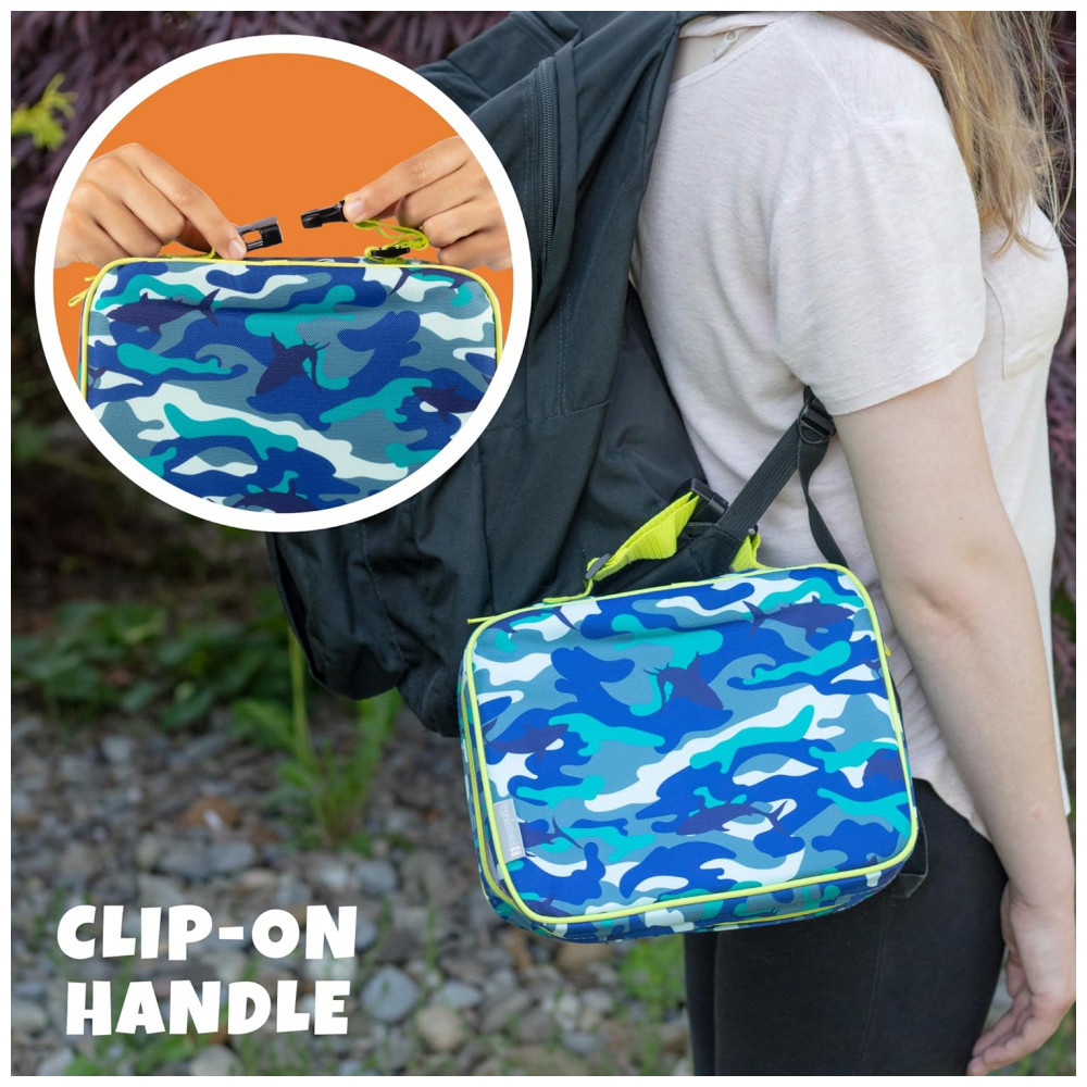 Possui uma alça de fivela lateral para transportar sua lancheira ou prendê la facilmente na parte externa de mochilas, bolsas ou pastas.