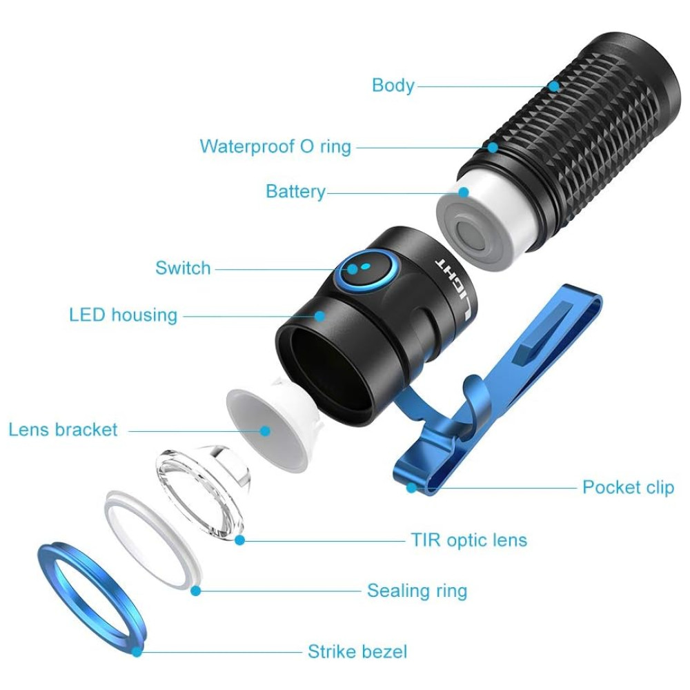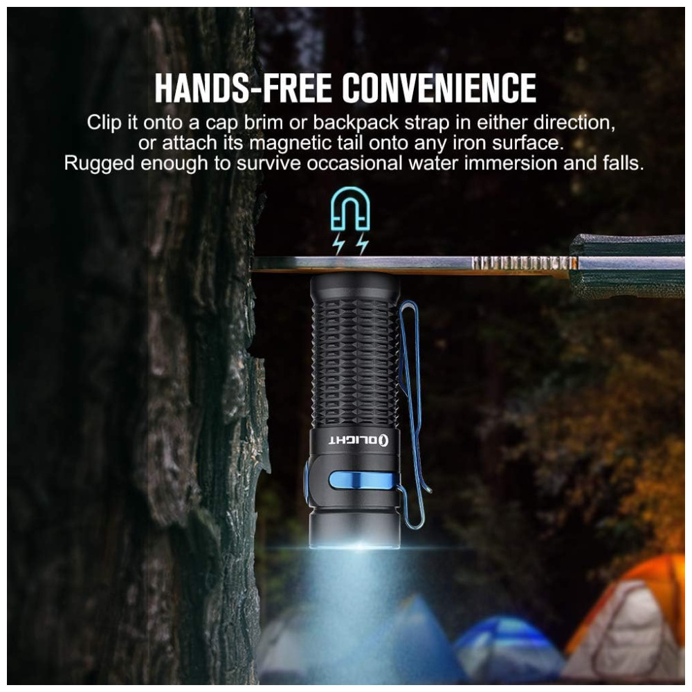 O clipe de bolso bidirecional pode ser preso a cintos, bolsos e mochilas para facilitar o transporte, ou preso à aba do chapéu para usar o Baton3 como um farol conveniente.