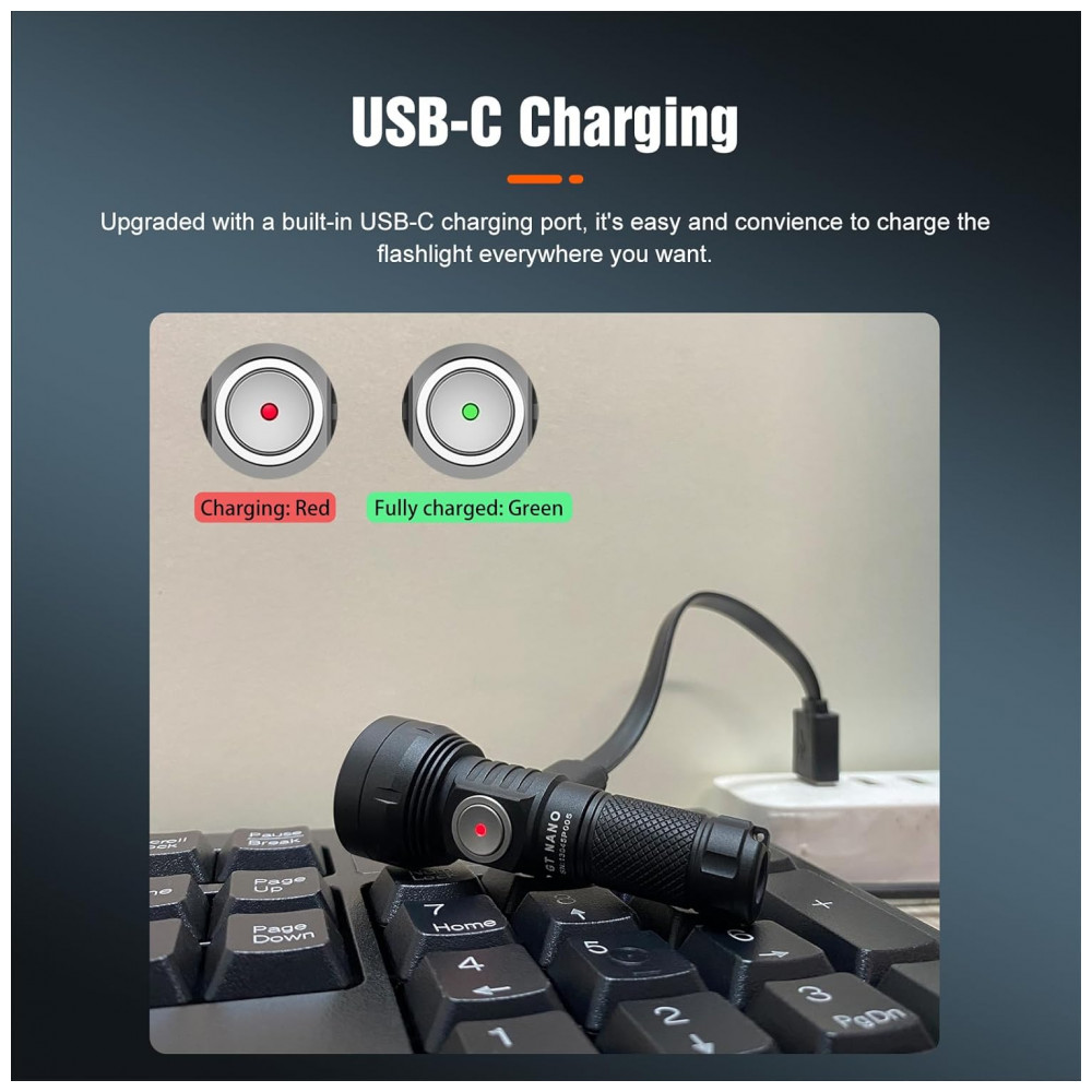 Lanterna 450LM Distancia 300 M com USB à Prova D IPX8 LUMINTOP GT NANO Preto