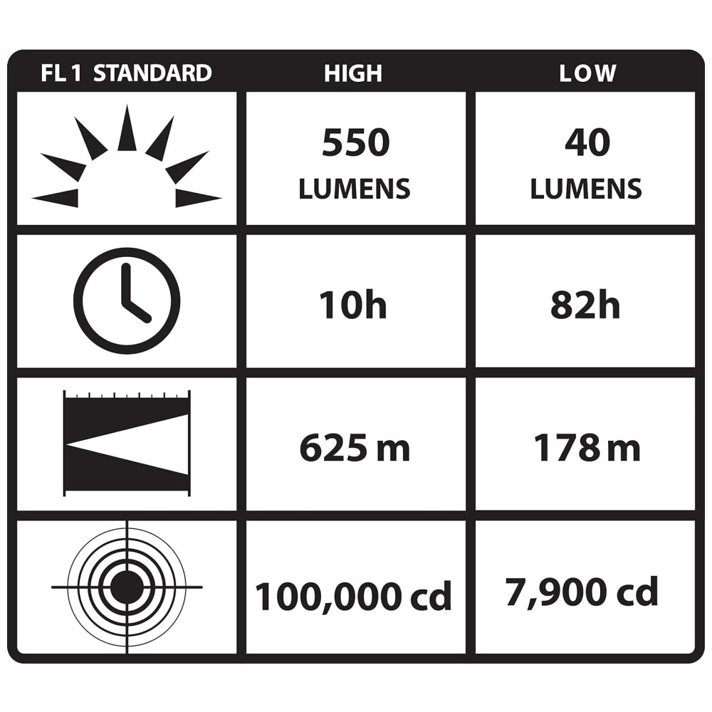 Baixo 40 lumens 7.900 candelas distância de 178m corre 82 horas