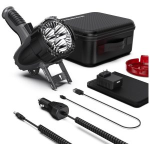 RECARREGÁVEL E PORTÁTIL Este holofote portátil de 6000 lúmen vem com o adaptador doméstico 100V 240V com cabo USB, carregador de carro de 12 24V com cabo de bobina de calibre pesado. Assim, você pode carregá lo em qualquer lugar. Junte este refletor LED de 12 volts aos seus veículos e você terá um conjunto completo para qualquer acampamento ou viagem de caça