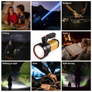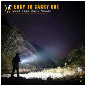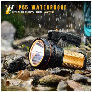 MATERIAL DE ALTA QUENIDADE À prova dágua Esta lanterna é feita de plástico ABS de engenharia de alta intensidade, vem com estrutura totalmente fechada, à prova de explosão, à prova de poeira e à prova de choque. IPX5 à prova dágua protege contra respingos de água de todos os ângulos.