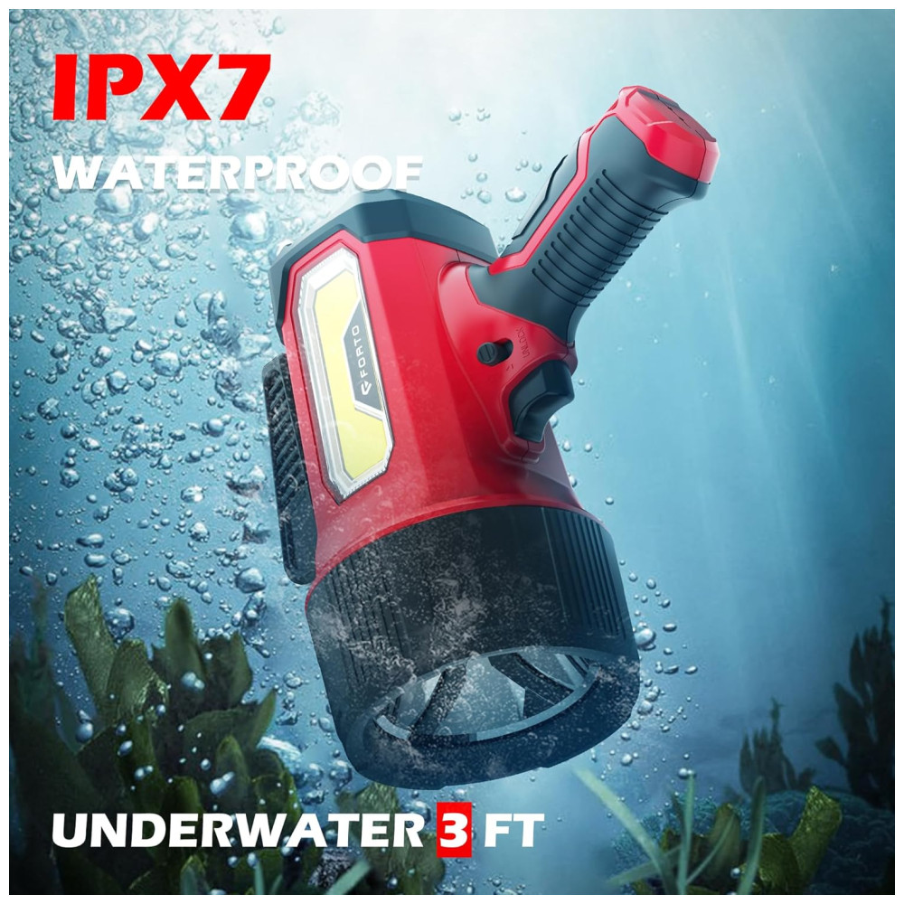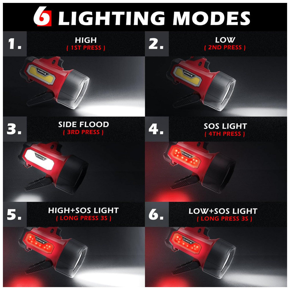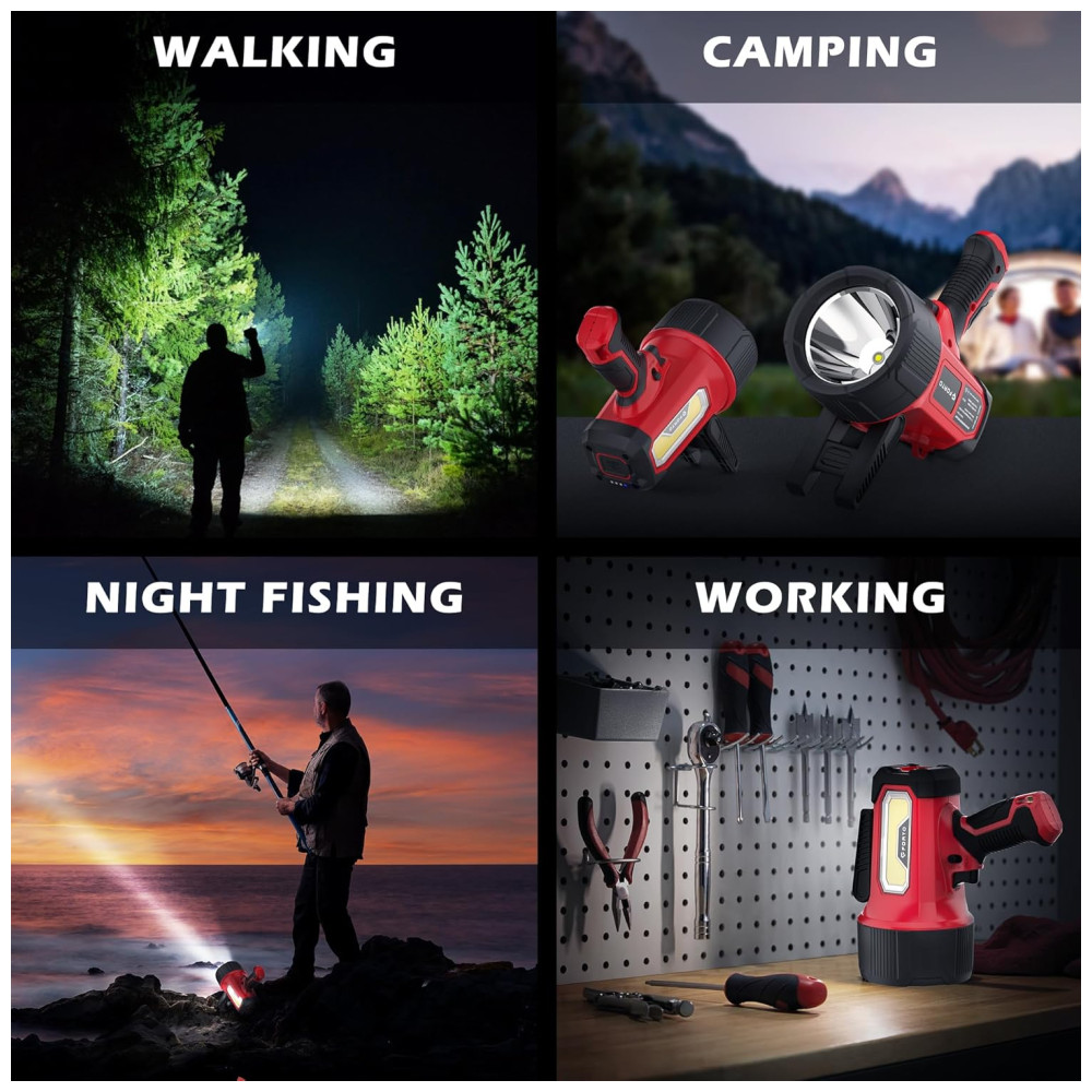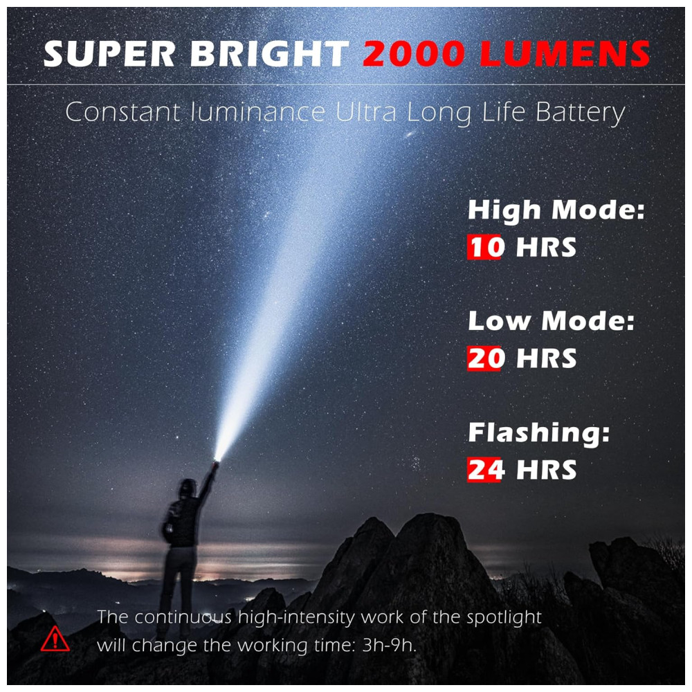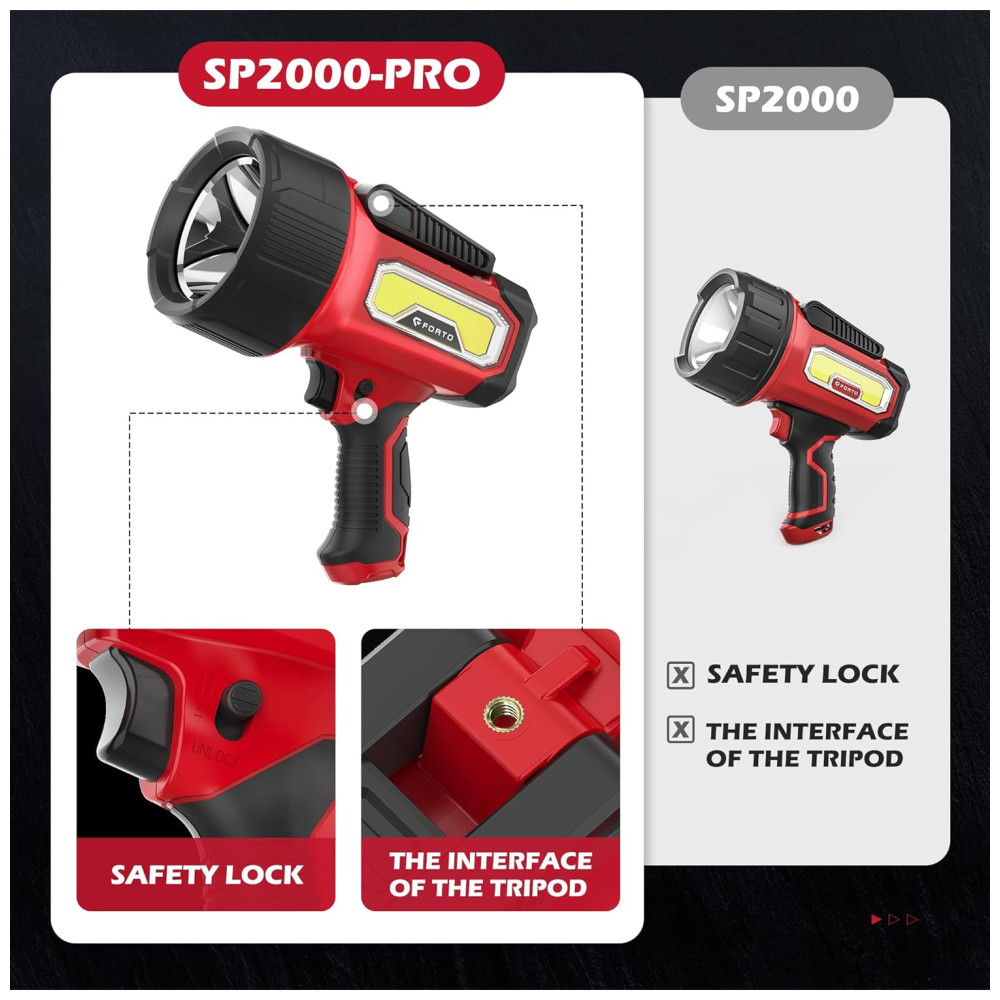 Lanterna de Mão Recarregável FORTO com 2000 Lumens Suporte Dobrável e 6 Modos de Luz – Ideal para Barcos Caça e Trilhas