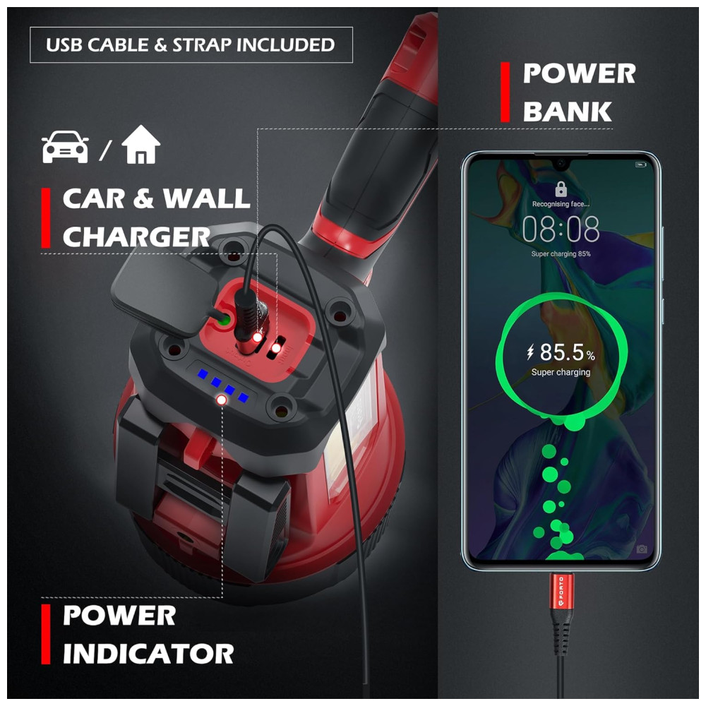 O Refletor de Mão FORTO oferece uma iluminação potente e abrangente com 2000 lumens, perfeito para áreas amplas. Possui 6 modos de iluminação, incluindo emergência vermelha, e é resistente à água IPX7 e quedas de até 1 metro. Com suporte ajustável de 120 graus para flexibilidade, pode ser usado como power bank. Leve e durável, é ideal para aventuras ao ar livre.