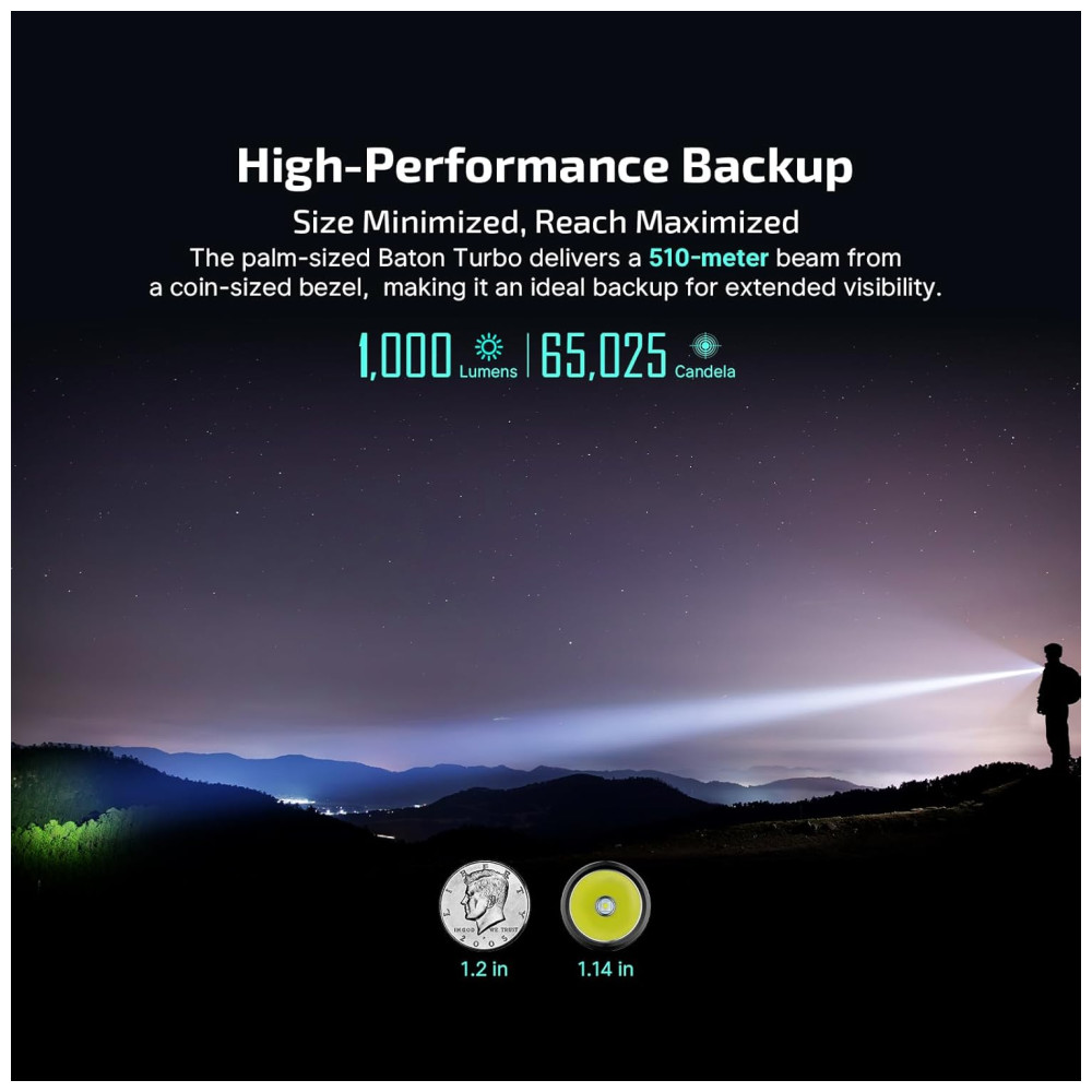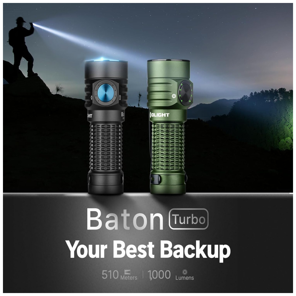 Lanterna de Mão Recarregável OLIGHT Baton Turbo EDC 1000 Lumens Compacta e Potente Alcance de 510 Metros Clip e Cordão para Camping Uso Doméstico