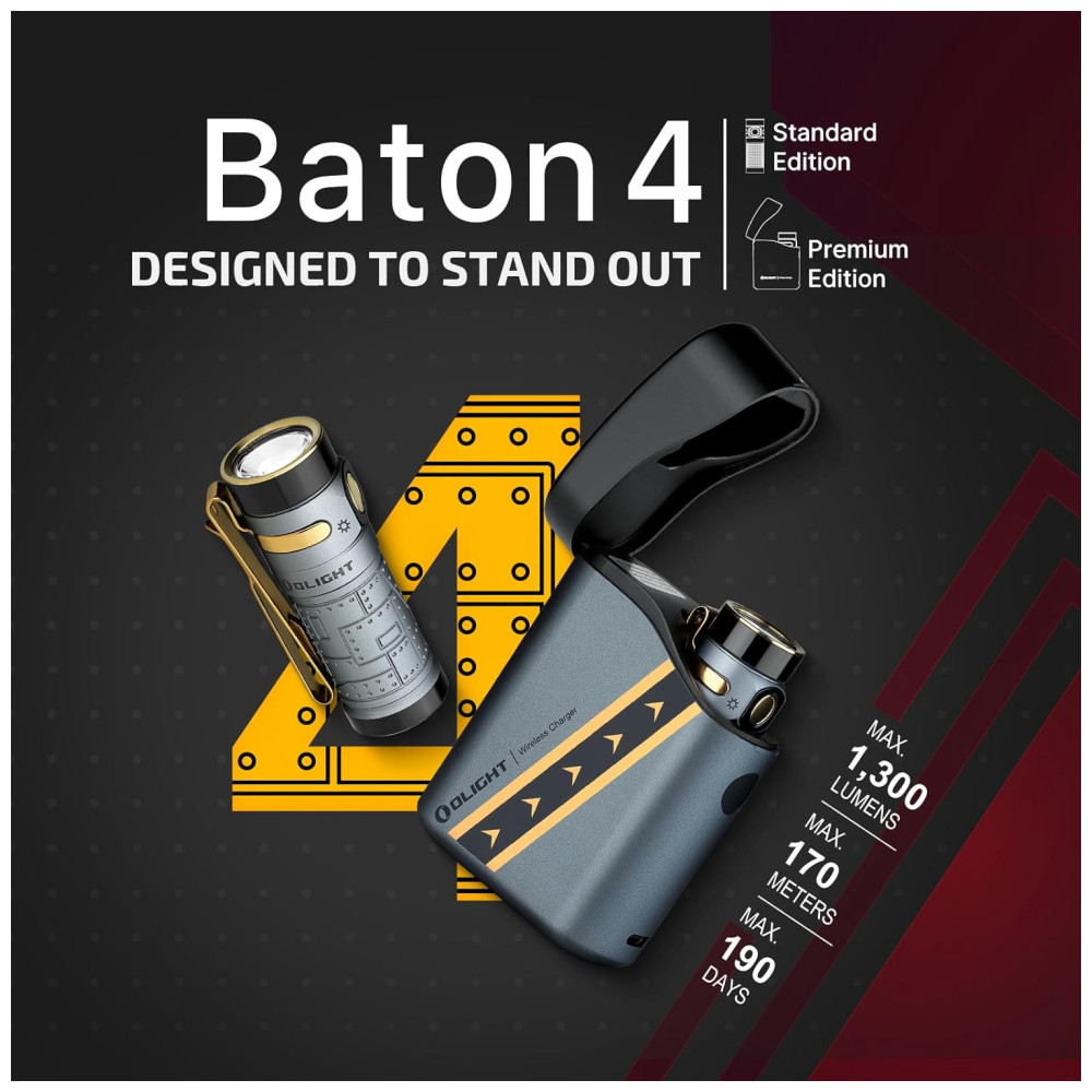 Lanterna EDC OLIGHT Baton4 Edição Premium – 1300 Lumens Case de Carregamento Tipo C Bateria Recarregável Pequena Lanterna LED à Prova d’Água para A