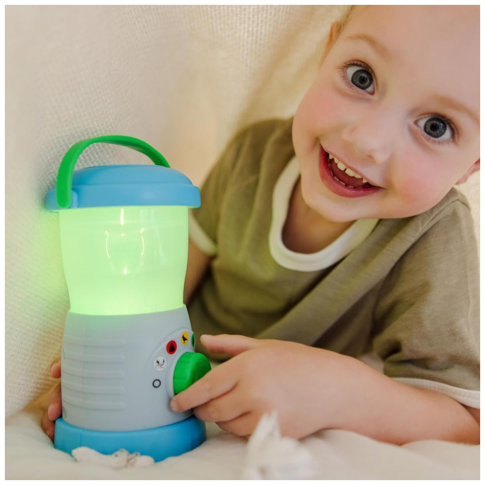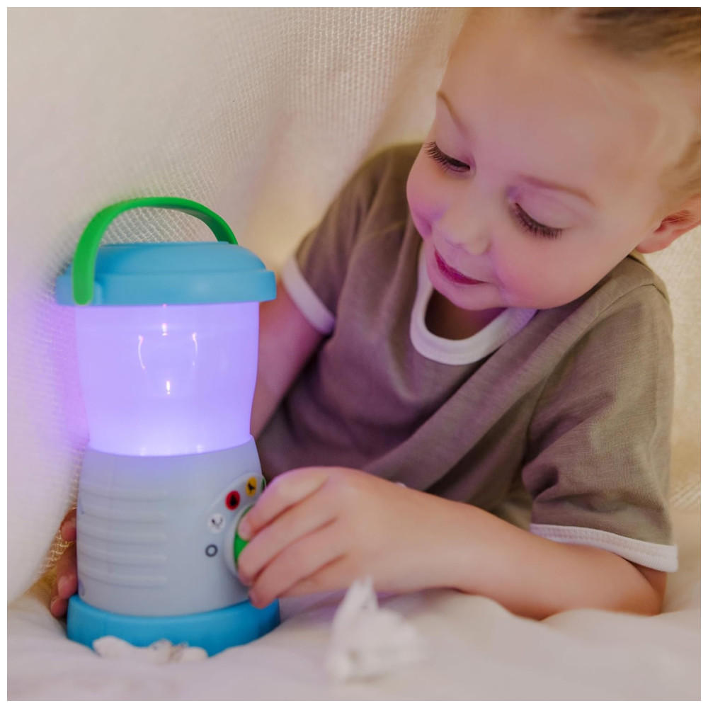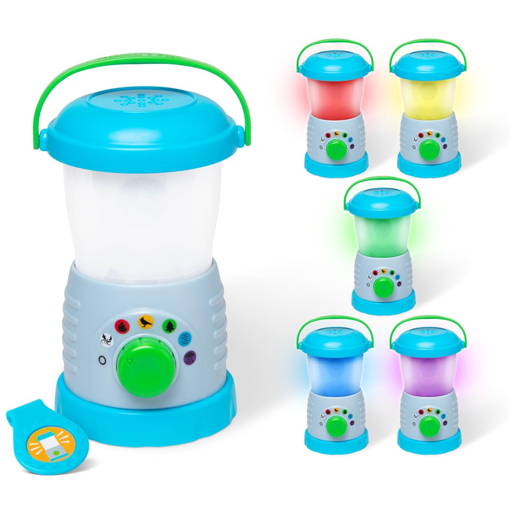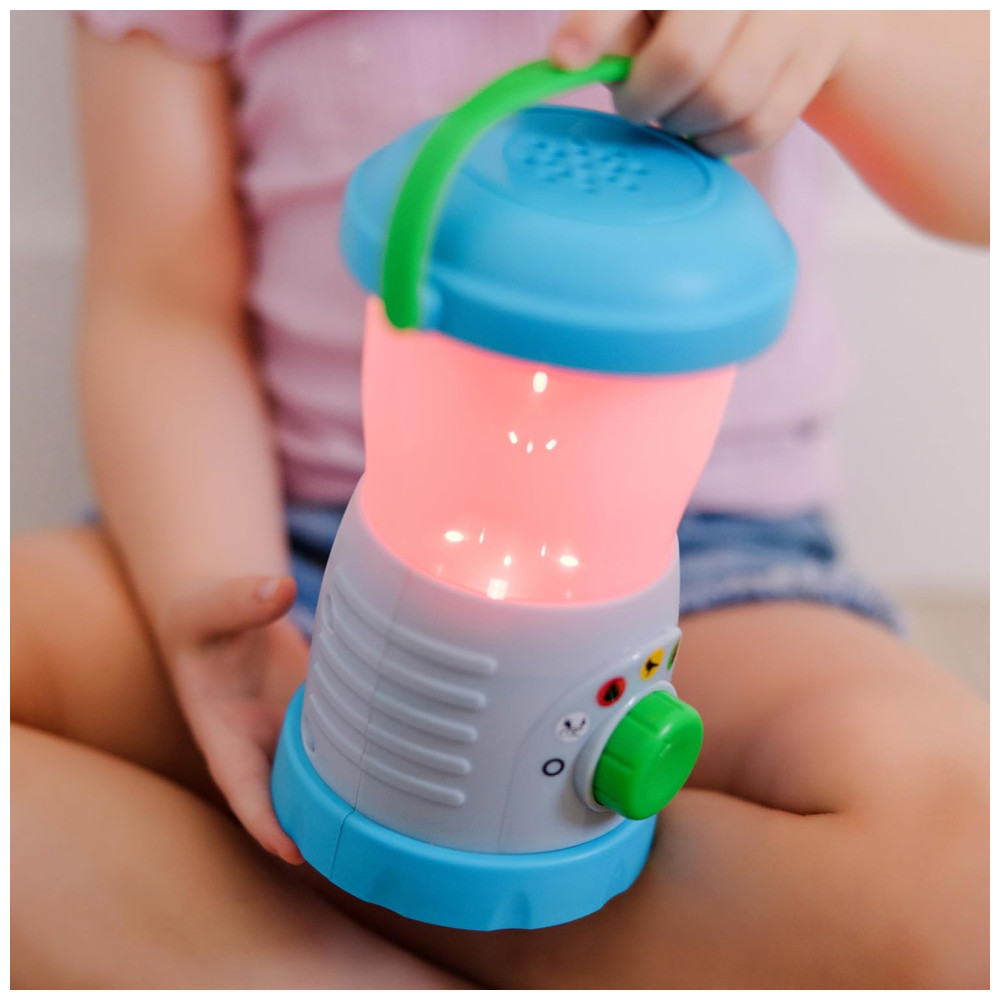 Explore a natureza de uma forma divertida com a lanterna de acampamento Lets Explore Light Sound Com seis opções de iluminação colorida, incluindo branco, vermelho, amarelo, verde, azul e roxo, esta lanterna permite que você escolha a cor da luz de acordo com o seu humor. Além disso, ela vem com efeitos sonoros correspondentes, como pássaros, floresta com coruja, fogueira crepitante, ondas do mar, riacho fluindo e chuva com trovões distantes, que são reproduzidos continuamente por até 30 minutos ou podem ser silenciados pressionando novamente.
