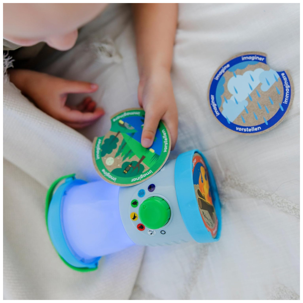 A lanterna é durável e vem com três cartões de dupla face para definir a loja de cartões de cena na parte inferior da lanterna, ajudando a criar um cenário para contar histórias. Com o objetivo de incentivar as crianças a se conectarem com o mundo natural por meio de brincadeiras imaginativas, Lets Explore é um ótimo presente para crianças de 3 a 6 anos que gostam de brincar sem tela. São necessárias 3 pilhas AA, não incluídas.