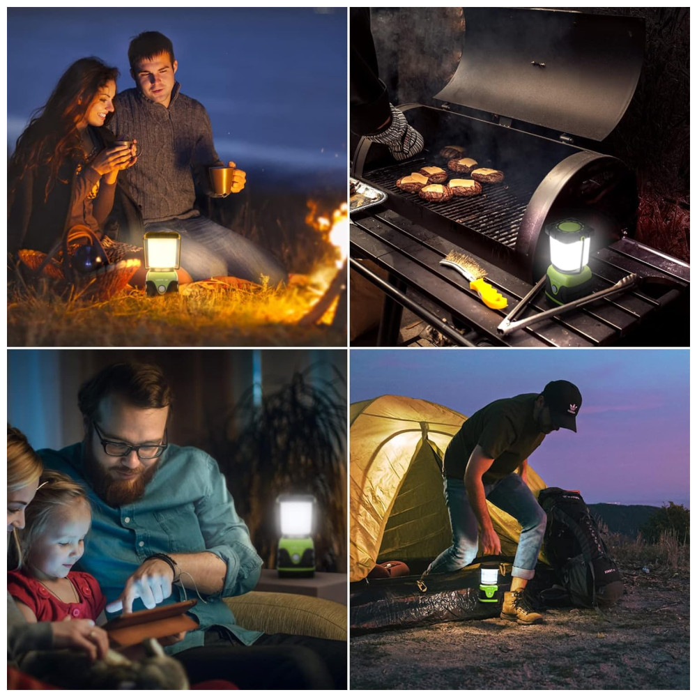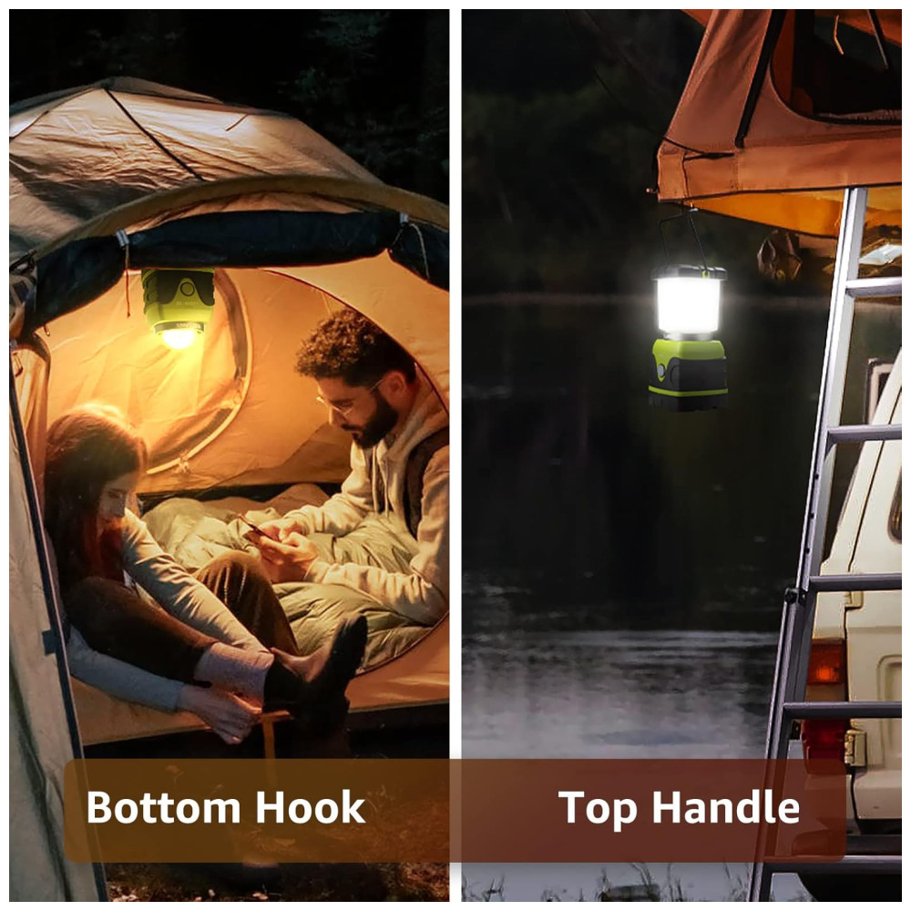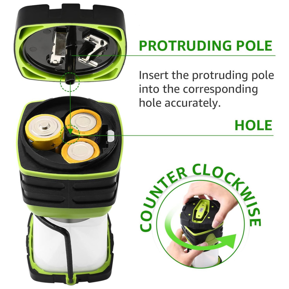 Conveniente de usar. Esta lanterna de acampamento portátil vem com dois ganchos, um na parte superior e outro na base, que podem pendurar a luz da barraca de cabeça para baixo para obter melhor luz ao iluminar uma grande área. Brilho à prova dágua e suficiente grade Grau de proteção IPX4, o que o torna bastante adequado para acampar, fazer caminhadas, pescar, passear com o cachorro etc. E o brilho de 1000 lúmens e a iluminação de 360 graus fornecem o brilho suficiente. O uso de baterias de 1,5V 3 x D NÃO incluídas como fonte de alimentação permite que ele possa ser até 12 25 horas, que duram mais do que a maioria das lâmpadas de acampamento do . Economia de energia e adequado para falta de energia, uso de emergência, kit de sobrevivência para furacões e terremotos etc. 4 modos de luz e regulável. Simplesmente curto. Pressione o interruptor da luz da barraca para ajustar entre 700lm branco frio e 300lm branco quente, 1000lm branco frio a 1000lm modo flash. Enquanto pressiona longamente, pode ajustar o brilho para atender às suas necessidades