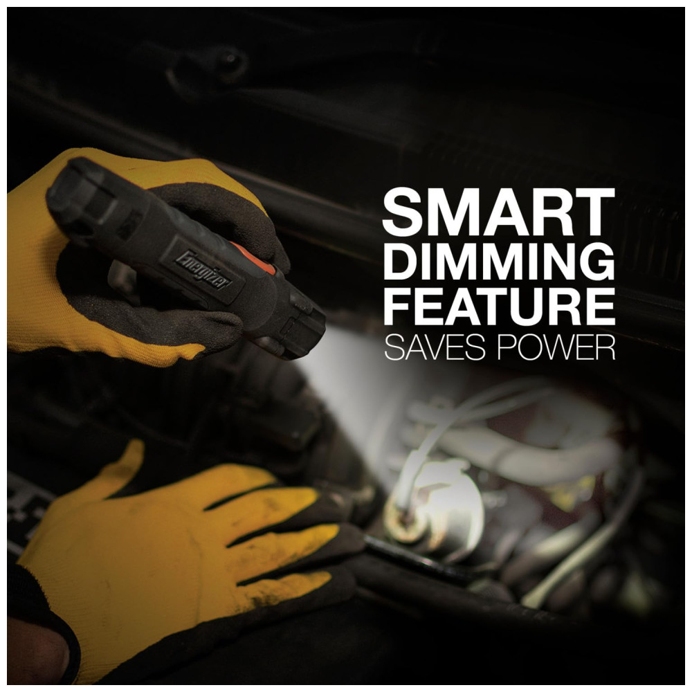 SMART DIMMING LED O recurso Energizer Smart Dimming controla a intensidade de energia da luz para recursos de economia de energia. Basta segurar o botão liga e desligar para ajustar o aparelho para uma potência desejada.