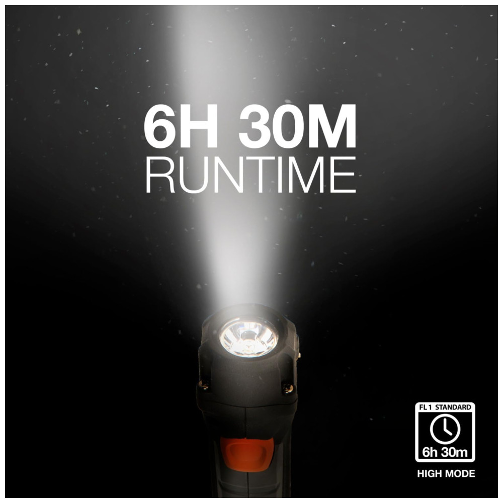 Não há lanterna que combine com uma lanterna profissional que seu trabalho local ou tecnologia inovadora de luz LED que você possa realizar. Chute, solte e derrube a construção de ABS, aço e borracha desta lanterna de tarefas e o design resistente às intempéries ajudam a resistir a quedas de até 7 metros e funcionam mesmo nas condições mais exigentes. Fácil de usar, mesmo se você estiver usando luvas utilitárias.