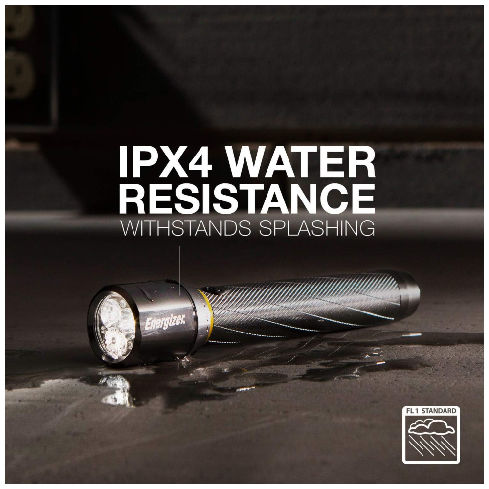 MÁXIMA DURABILIDADE Corpo de alumínio durável e de nível de aeronave com construção resistente à água IPX4 resiste a respingos Esta lanterna dá sua máxima durabilidade para uso interno e externo.