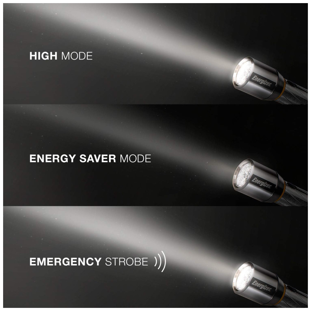 Lanterna com Foco Digital funciona com 2 baterias Energizer MAX AA BATERIAS INCLUÍDAS.