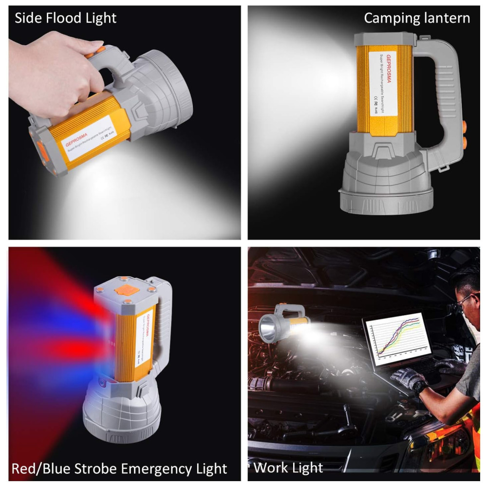 1. Super brilhante de longa distância. Lanterna Lanterna lateral de inundação separada Lanterna recarregável lateral Bateria grande recarregável alimentada por bateria saída USB pode montar no tripé ou no suporte da bicicleta. 2. Lanterna do lado brilhante separada esta luz de busca da lanterna com luz de spot também possui lanterna de luz de inundação com luz extra brilhante, muito brilhante para a lâmpada de emergência, luz de trabalho, lanterna de acampamento. Seu modo de piscar LED vermelho , azul também pode ser como SOS, luz de aviso. 3. Super brilhante CREE XHP 70.2 LED. Lanterna Spotlight de feixe maior Super Bright CREE XHP 70.2. Holofote LED Spotlight Alto brilho máximo 6000 lúmens , modo de baixo brilho 2500 lúmens, mais brilhante que muitas lanternas com preços mais altos. Lanterna com feixe maior. A lanterna de alta potência pode iluminar mais de 800 metros. 4. Este holofote à mão com lanterna incluído Bateria de lítio grande recarregável 18650 de alta potência 4 peças 10000 mAh. Alimentado e saída USB como banco de potência para carregar o telefone. A proteção múltipla inteligente proteção contra sobrecarga , descarga excessiva pode tornar o carregamento . Carregador incluído. Longo tempo de trabalho, alta duração da luz por 10 horas e pouca luz até 30 horas. 5. Holofote portátil leve e leve holofote apenas 700 gramas. Maneiras de transporte múltiplo e IPX5 à prova dágua. Manusear para tirar e pendurar com facilidade. A tocha também inclui uma alça de ombro para facilitar o transporte e sua parte inferior possui um orifício para montagem em tripé ou suporte de bicicleta para liberar as mãos o suporte para tripé ou bicicleta não está incluído no pacote, resistente à água, uma boa solução para algumas condições como barco, marinha, pesca, caça, acampamento ao ar livre, reparação de automóveis, resgate