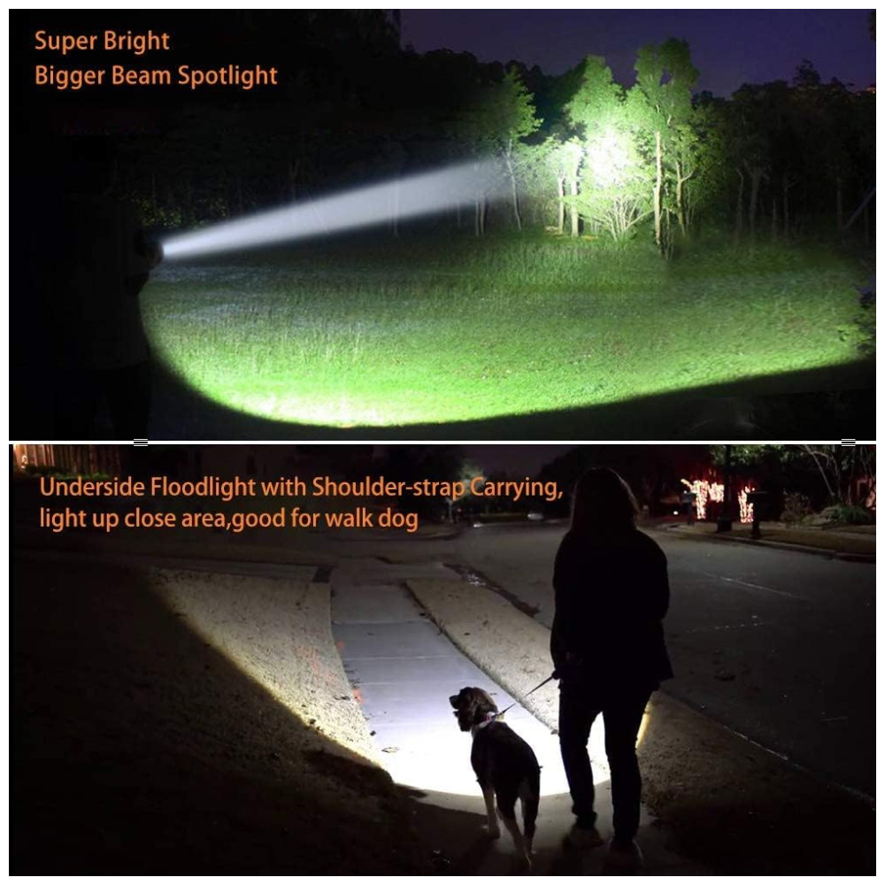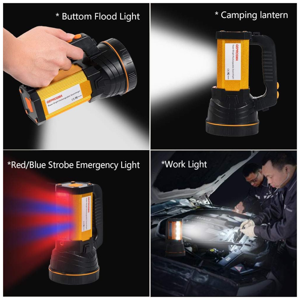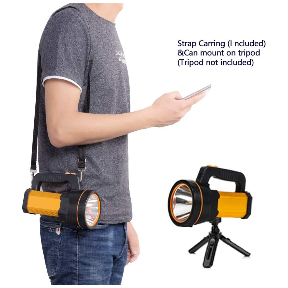 Lanterna Recarregável Brilhante. Mais Funções. Super brilhante lúmens altos lanterna de luz de busca por spot Lanterna lateral de luz de inundação separada Lanterna de luz de inundação lateral separada Recarregável grande bateria alimentada 10000 mah Saída USB para carregar o telefone lidar com o dispositivo portátil carregando alça de ombro pode montar no tripé ou suporte de bicicleta. Lanterna de luz de inundação do lado brilhante separada. Este holofote de lanterna LED também possui luz de inundação lateral extra brilhante, muito brilhante para lâmpada de emergência em casa, luz de trabalho, lanterna de acampamento. Seu modo de luz estroboscópica VERMELHO , AZUL também pode ser como SOS, luz de aviso. Recarregável super brilhante de busca por luz de spot de feixe longo CREE XHP 70.2 recarregável. Refletor de fonte de luz LED de alta potência CREE XHP 70.2 fornece iluminação ultra longa de 800 m, interruptor de modo Brighness High , Low, holofote portátil para barco, marinha, caça, jardim, cachorro ambulante etc. Bateria de lítio 18650 recarregável grande de alta potência incluída. 4 peças 10000 mah e saída USB como banco de potência para carregar o telefone. Proteção múltipla inteligente proteção contra sobrecarga , descarga excessiva pode torná lo ao carregar esta luz de pesquisa portátil. Lanterna de longa duração, alta duração de luz por 10 horas e pouca luz por até 30 horas. Portátil leve apenas 670gr. Maneiras de transporte múltiplo e lanterna à prova dágua IPX6 à prova dágua. Alça superior para facilitar a tomada e desligar. A tocha leve de pesquisa também inclui uma alça de ombro para facilitar o transporte e seu fundo possui um orifício para montagem em tripé ou suporte de bicicleta para liberar as mãos o tripé ou o suporte de bicicleta não estão incluídos no pacote, lanterna IPX6 à prova dágua para barco, marinha, caça, lanterna de acampamento ao ar livre, pesca, reparação de automóveis, pesquisa etc