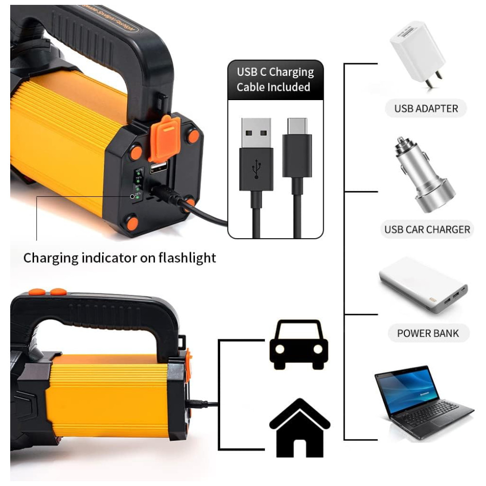 Lanterna LED Holofote Recarregável Saída USB para Carregar Celular À Prova Dágua GEPROSMA Amarelo
