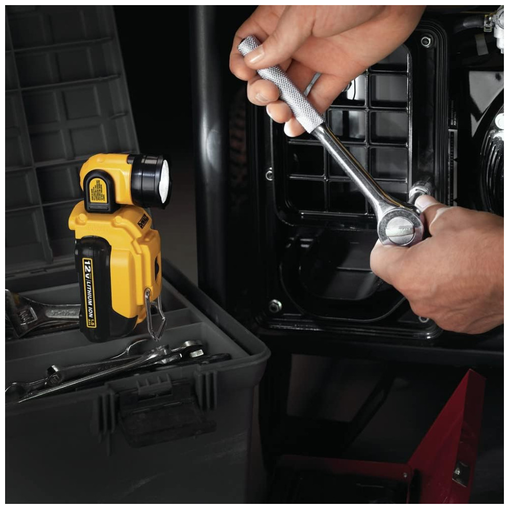 O Worklight DCL510 12V MAX LED possui uma luz LED brilhante e um poderoso ímã. O cabeçote gira 360 graus e pivôs A tensão inicial máxima nas baterias de 12 volts máx. carga de trabalho é de 12 volts. Medido sob uma carga de trabalho, a tensão nominal é 10,8. Saída de LED brilhante 130 Lumens, bateria não incluída. Ímã poderoso uso das mãos livres em várias colocações Suporte uso das mãos livres em várias colocações A cabeça gira 360 graus. A DEWALT DCL510 12V MAX LED Worklight é uma lanterna , lanterna de trabalho versátil e útil que fornece utilidade para praticamente qualquer circunstância. Possui uma saída LED brilhante de 130 lúmens. O poderoso ímã e o suporte adicional permitem o uso do viva voz em várias veiculações permitem que você use as mãos em tudo o que estiver trabalhando Também possui uma cabeça giratória que gira 360 . Bateria não incluída