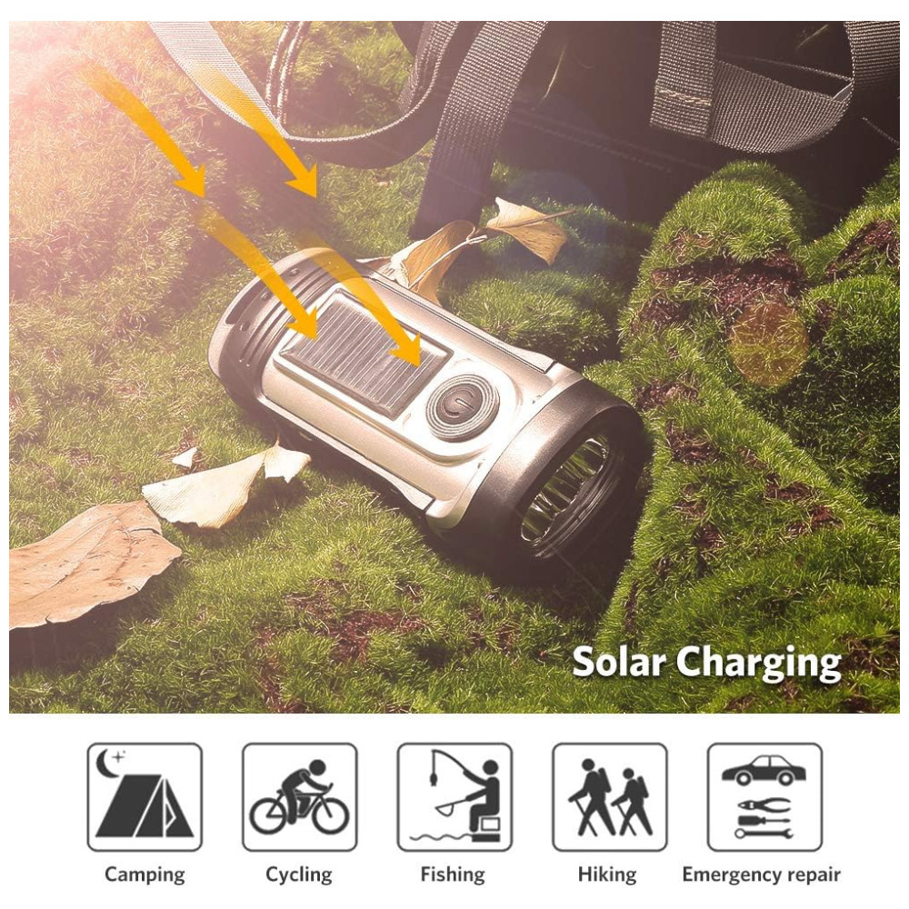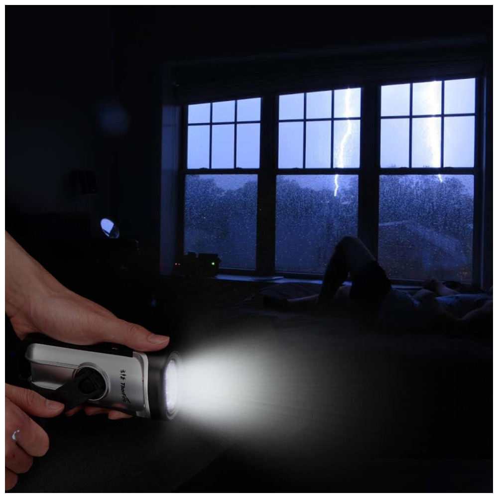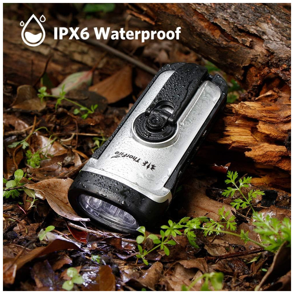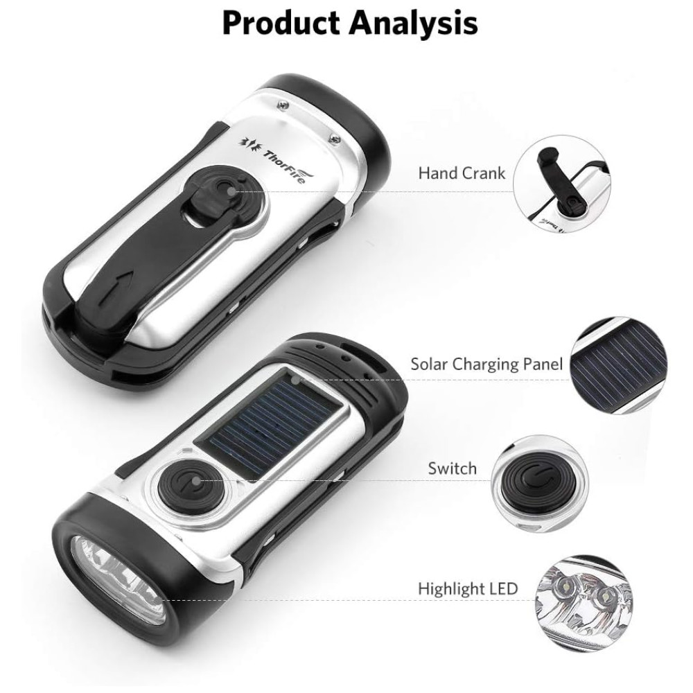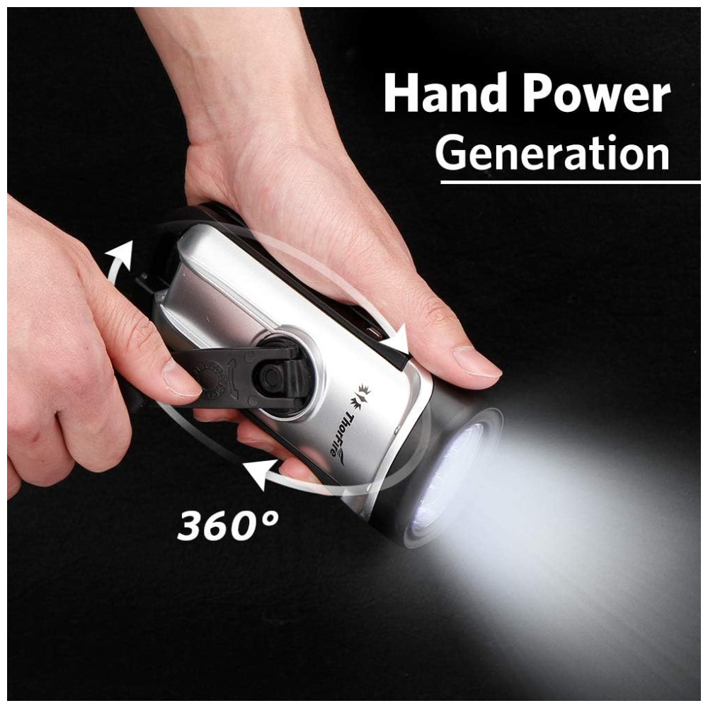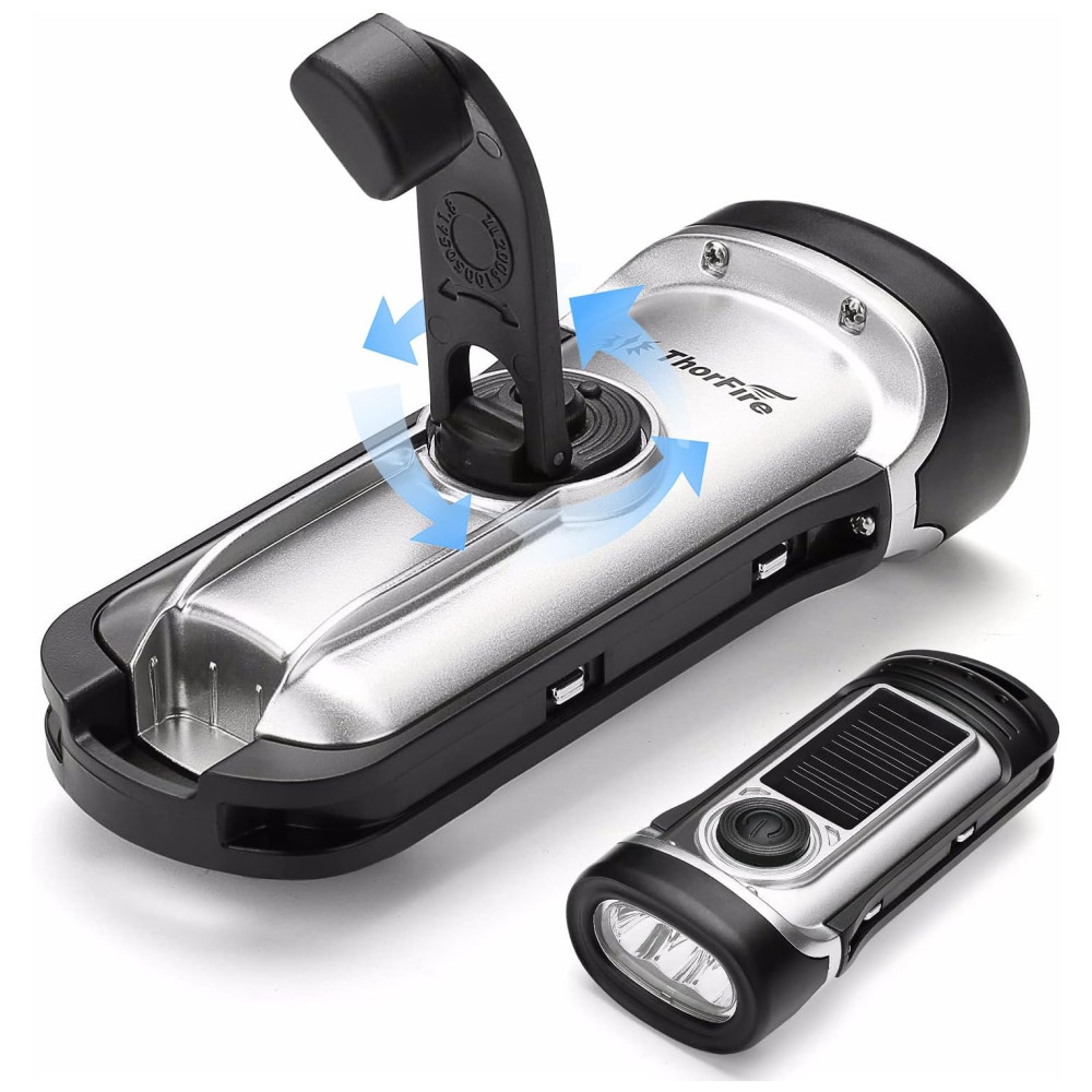 Lanterna LED Manivela Recarregável A Energia Solar À Prova Dágua Ideal Acampar Escalada THORFIRE Prateado