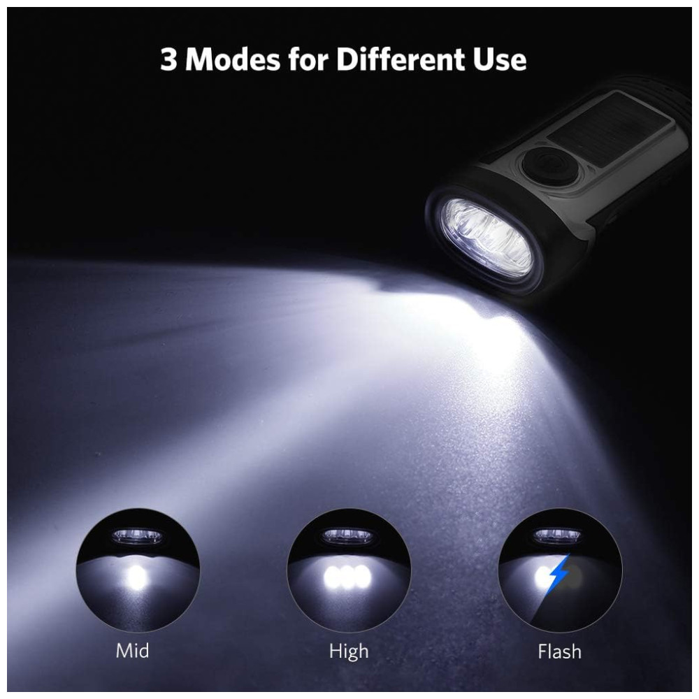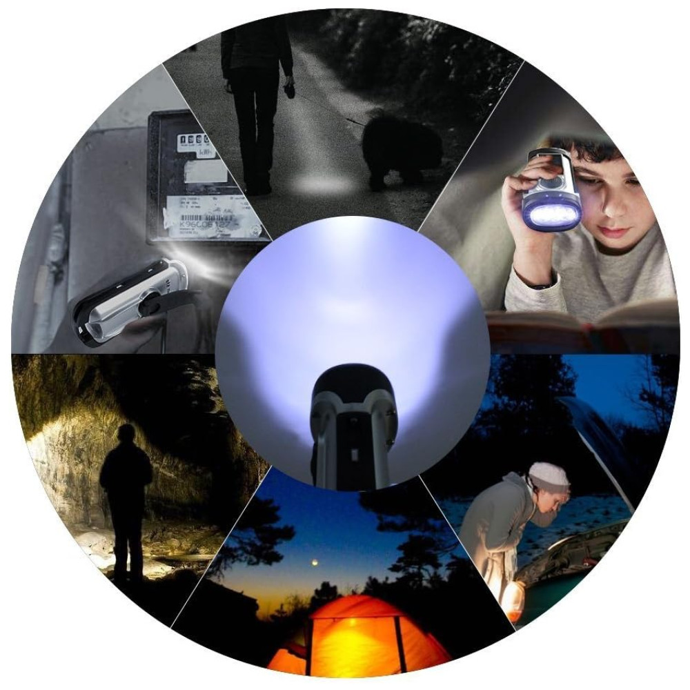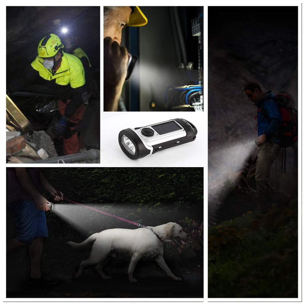 Lanternas solares e manuais, sem necessidade de pilhas. Esta lanterna sem bateria é perfeita para emergências, falta de energia ou sempre que precisar de luz. Alta eficiência da lanterna de acionamento por conversão de energia apenas 1 minuto de acionamento gera energia suficiente por 1 hora usando o tempo. IPX6 à prova dágua e submerso até 13mts. Ferramenta muito durável e útil para uso doméstico e externo. Como para uso em veículos, camping, caminhadas, viagens etc. Se você faz aventura de sobrevivência ou escalada, não é necessário ter holofotes de bateria. Lanterna brilhante esta lanterna movida a energia solar está equipada com lâmpada LED de alta qualidade. Lanternas muito portáteis e brilhantes. Coloque o ao sol ou enrole para recarregar