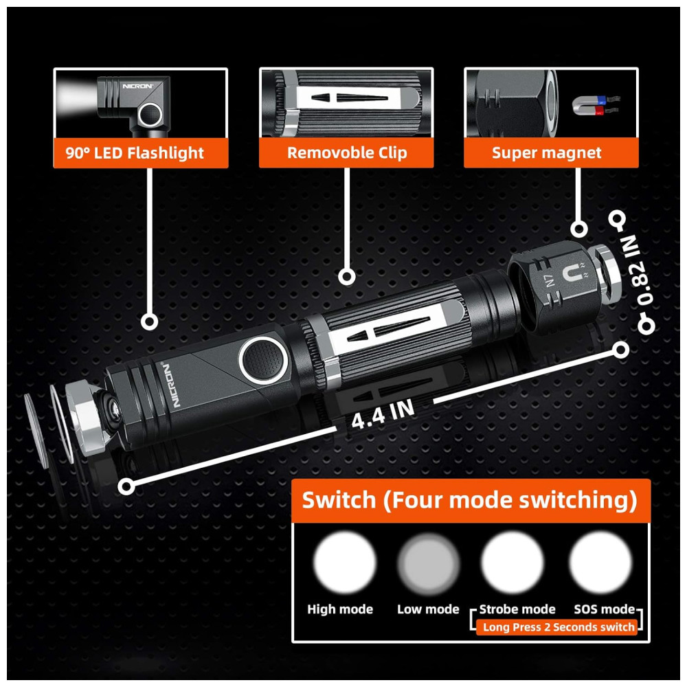 Lanterna LED N7 600 Lúmens Porta USB 4 Modos de Iluminação à Prova D Água NICRON Preto