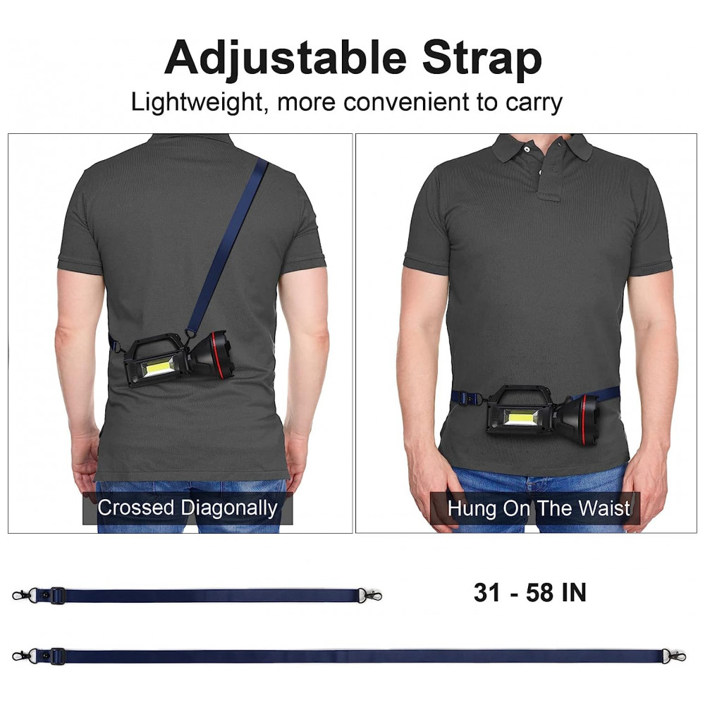 Fácil de transportar Use com a alça de ombro, você pode carregar o holofote da maneira que quiser. Leve e confortável, liberte suas mãos. Ótimo para atividades ao ar livre