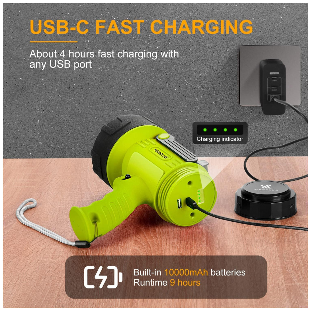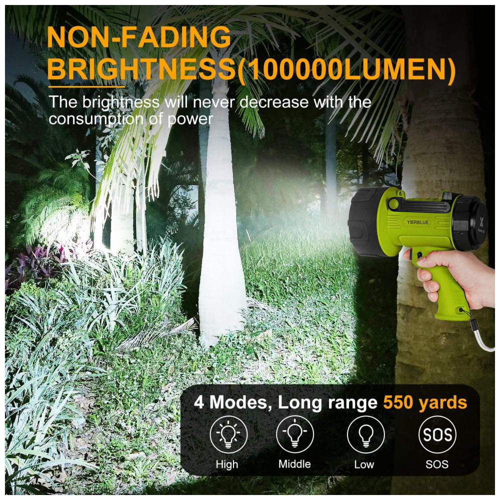 Lanterna LED Recarregável 9 Horas de Ação á Prova Dágua IP67 e 100.000 Lúmens YIERBLUE Verde