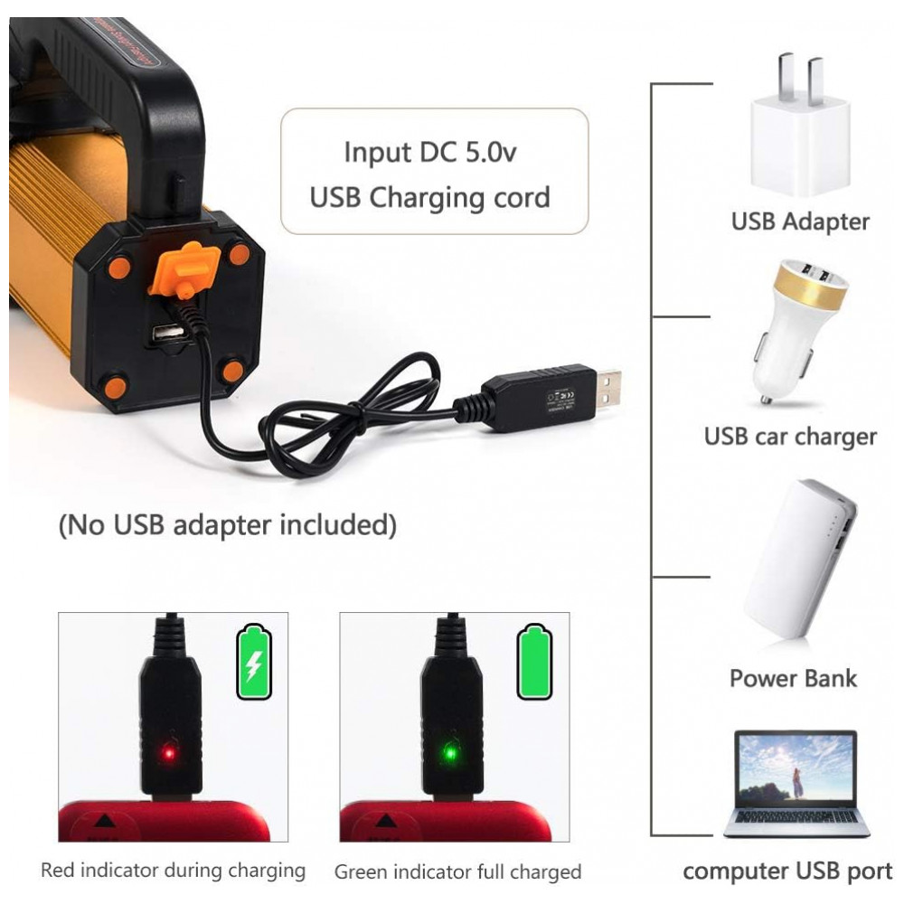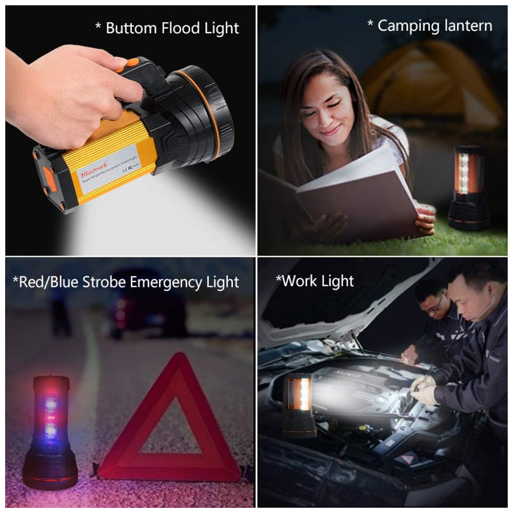 Lanterna de holofote separada do lado brilhante Este holofote de lanterna portátil também adiciona uma luz de inundação do lado brilhante para iluminação de área curta, a lâmpada de holofote é projetada no lado oposto da alça, então esta tocha é mais fácil de iluminar seu espaço frontal pegando na alça ou pendurando.