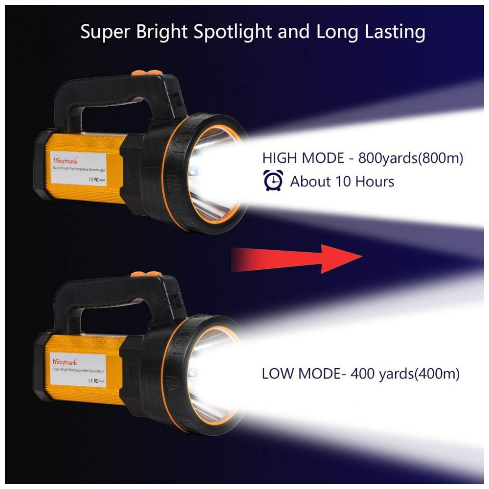 Lanterna de holofote de longo alcance super brilhante recarregável Lumens de alta potência fonte de luz led holofote holofote fornece iluminação ultra longa de 800 metros 2600 pés, interruptor de modo alto, baixo de brilho.