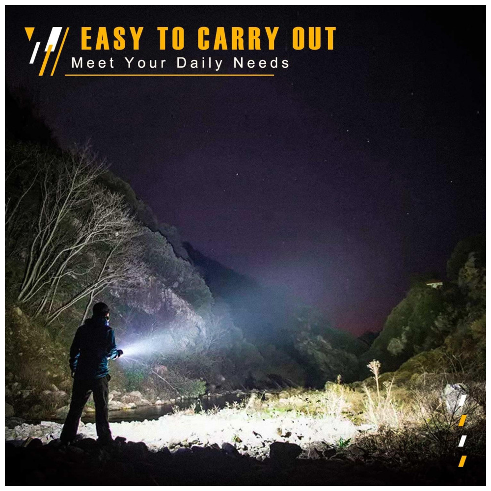 Bateria de grande capacidade e banco de energia de emergência A capacidade da bateria de até 6600mAh pode proporcionar um longo tempo de trabalho ao ar livre. Esta lanterna recarregável brilhante também serve como um banco de energia de emergência para sua câmera, GPS, telefone celular, etc., um equipamento de acampamento essencial como uma grande lanterna recarregável.