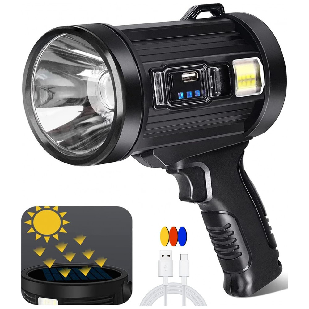 Lanterna LED Recarregável com Painel Solar e 90.000 Lúmens JSKNB Preta