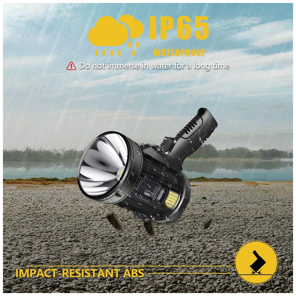 FOCO SUPER BRILHANTE DE 90000 LUMENS O chip LED XHP90 integrado permite que a luz do ponto tenha 90000 lumens ultra altos e fornece uma distância de iluminação de cerca de 800 M.