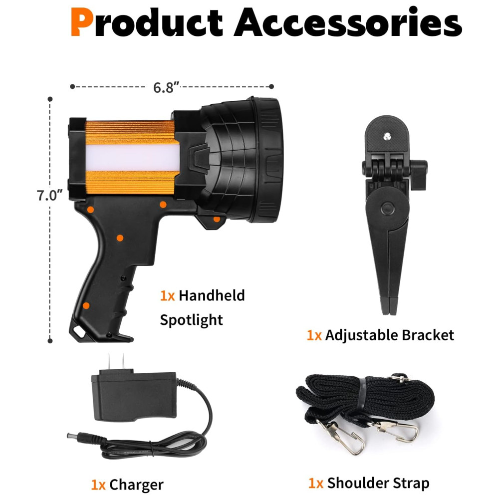 Múltiplas opções de uso Quando você anda com um cachorro, a alça do ombro pode impedir que os holofotes recarregáveis caiam. O traje de suporte ajustável para camping, pesca noturna e churrasqueira libera perfeitamente as mãos.