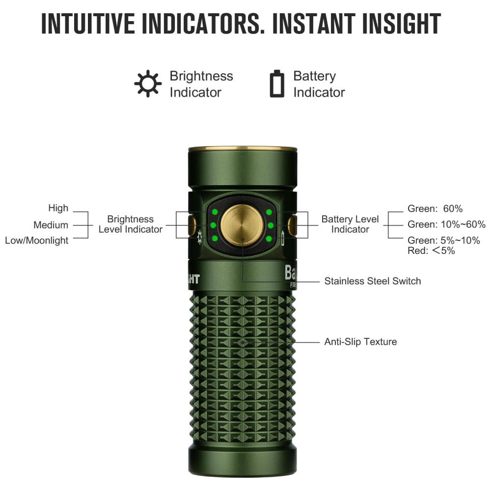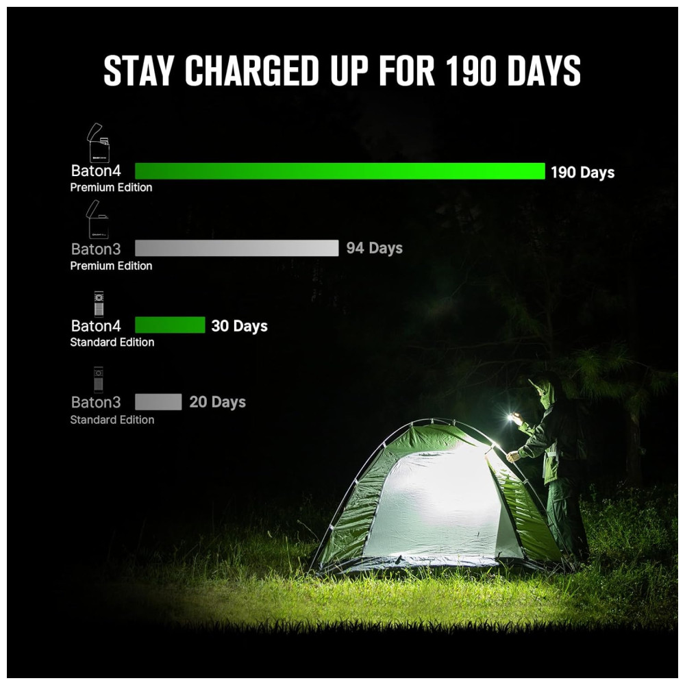 A lanterna EDC Baton4 possui uma potência máxima de 1.300 lumens e alcance de luz de 170 metros. Com um ímã embutido e um clipe resistente bidirecional que permite fixá-la em superfícies metálicas ou prender ao cinto. Possui alça de segurança na caixa de carregamento para evitar quedas acidentais. Esta poderosa caixa de carregamento fornece até 190 dias de duração da bateria e é totalmente compatível com a Baton3, além de suportar o armazenamento e carregamento dos modelos S1R II, Perun Mini e Perun 2 Mini. Com uma entrada USB-C universal, pode ser facilmente carregada ou utilizada para carregar dispositivos móveis. A lanterna portátil apresenta um indicador microperfurado que mostra o brilho e a vida útil da bateria. Um botão de exibição digital na caixa permite uma indicação precisa do nível da bateria e ajuste de brilho. Com 6 modos de luz, você pode escolher entre o Modo1 de 1300/300 lumens, Modo2 de 600/60 lumens, Modo3 de 60 lumens, Modo4 de 12 lumens, Modo5 de 0,5 lumens ou o strobe a 13Hz de 1300 lumens, de acordo com sua preferência.